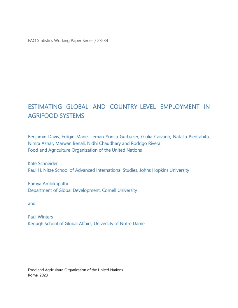 研究报告题为《全球和国家层面农业粮食体系就业测算》,由粮农组织统计司以工作文件的形式发布。工作文件指出,此项新型研究在方法上做到了协调一致,其采用的计量经济学模型以国际劳工组织的数据为基础,并用粮农组织农村生计信息系统(RuLIS)中的入户调查数据进行验证。