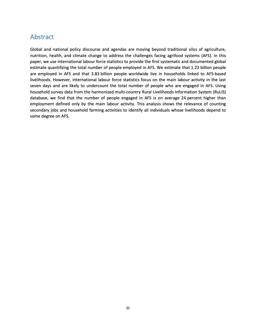 根据联合国粮食及农业组织(粮农组织)的一项最新研究,2019年世界农业粮食体系从业人员人数约为12.3亿,而且世界近半数人口,即这一数字的三倍多,其家庭依靠农业粮食体系为生。