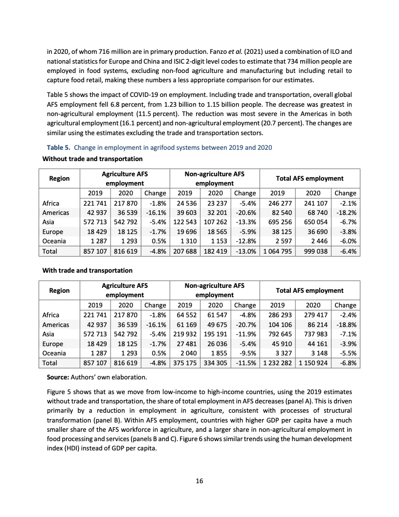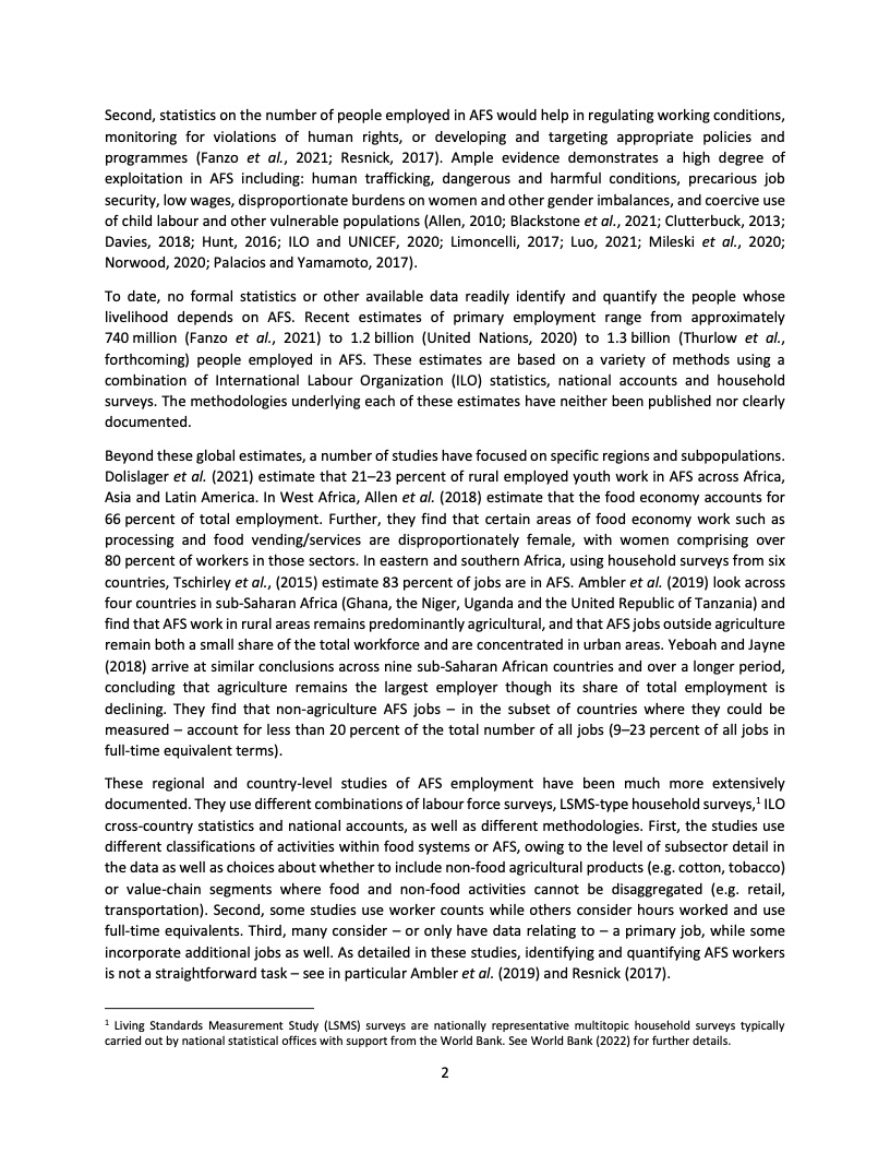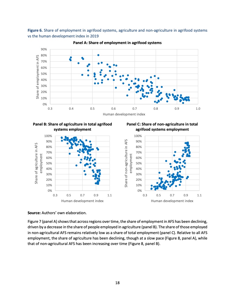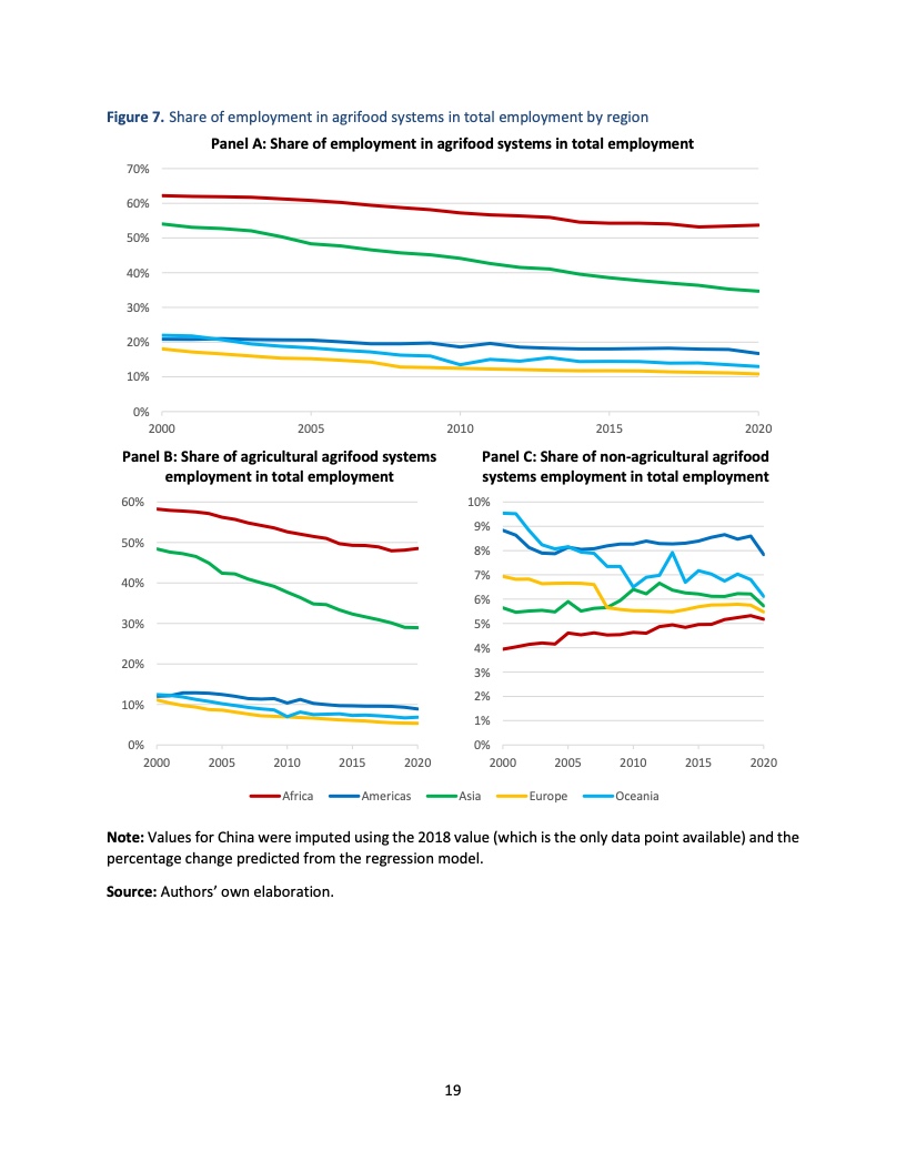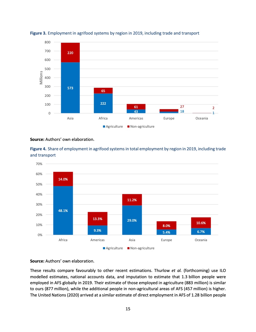 如果把相关的贸易和运输活动统计进来,农业粮食体系为非洲提供了62%的就业,在亚洲和美洲这一比例分别为40%和23%。
