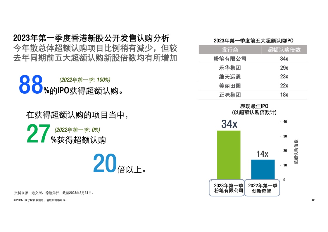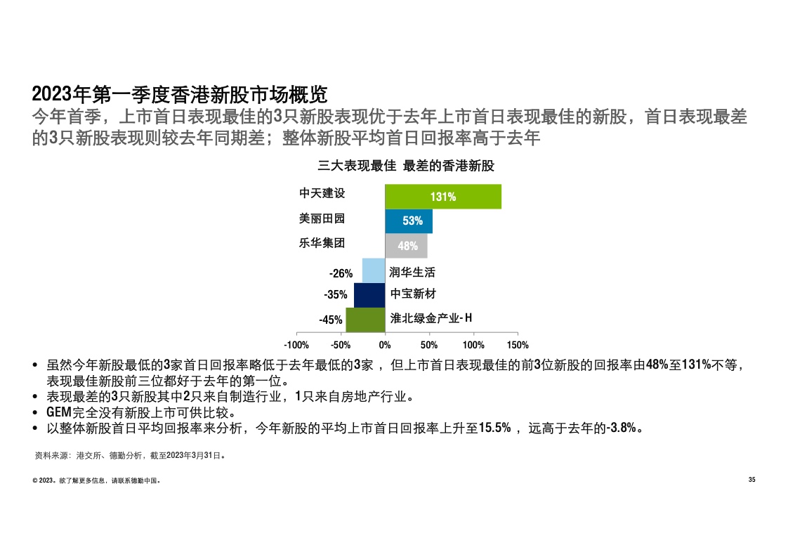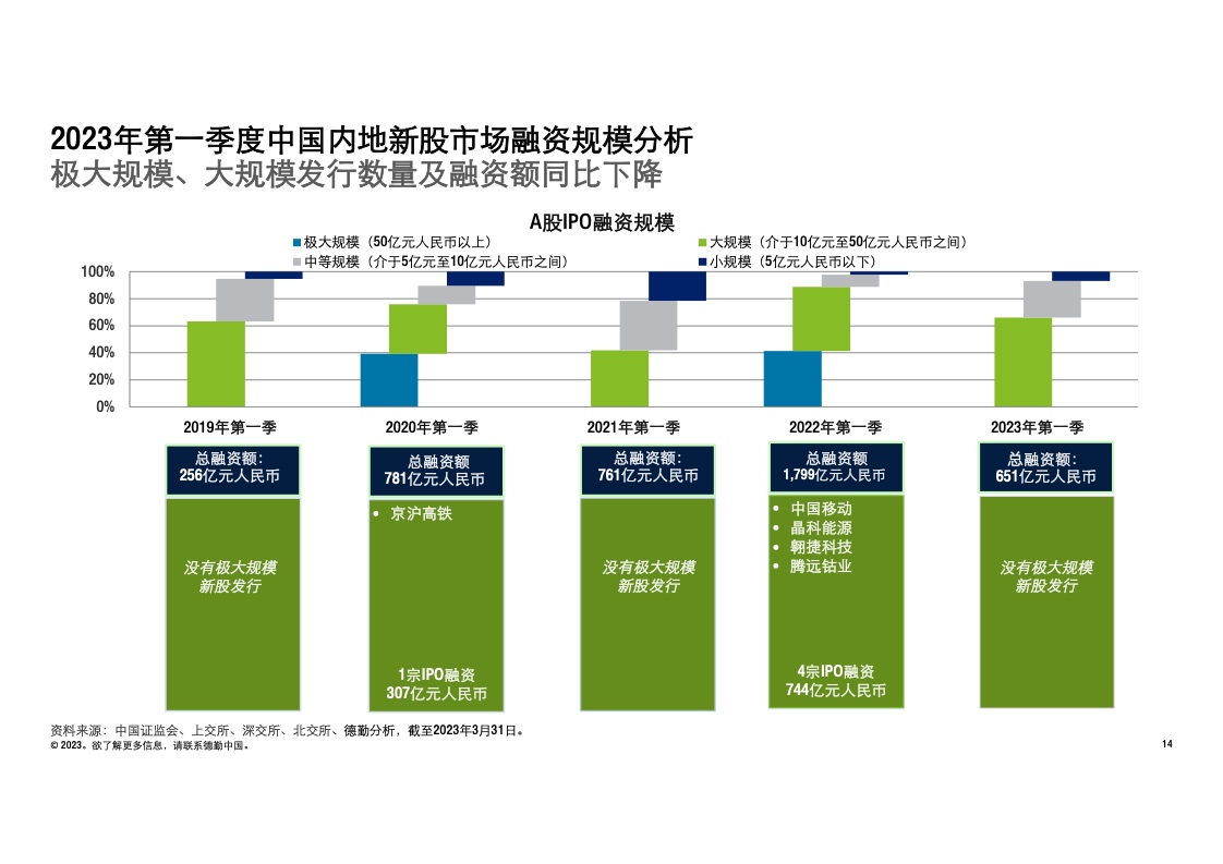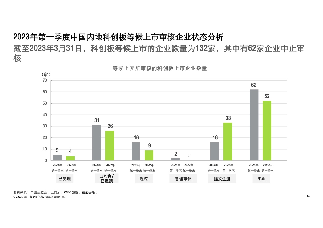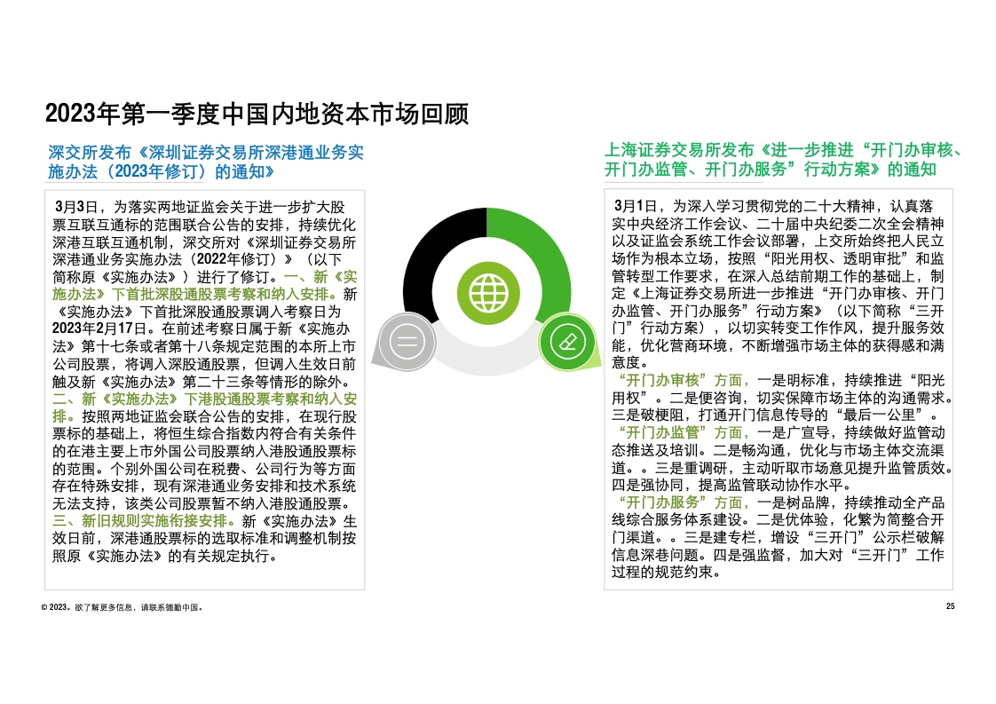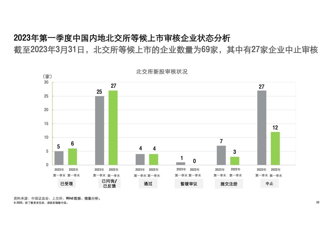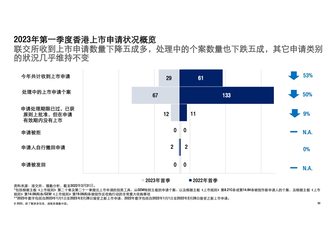 资本市场服务部预期,全面实行股票发行注册制后,内地新股活动将于后三季逐趋活跃。在经济及商业活动逐渐恢复、中央政府稳经济增长的政策及措施以及新股常态化发行的支持下,预计A股市场在2023年仍然会获得较2022年多的新股融资额,而2022年为A股市场新股融资额刷下新纪录的一年。