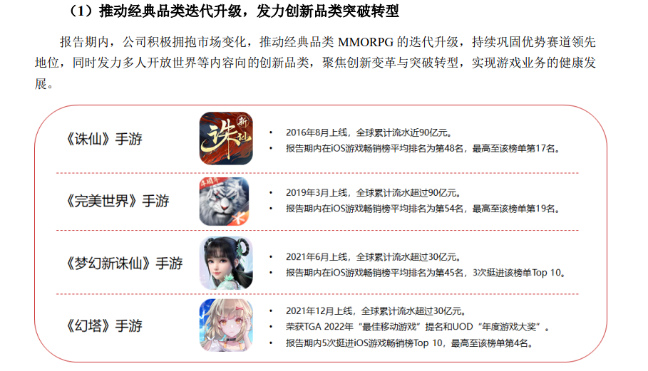 据介绍,该公司报告期内游戏业务扣非净利润同比上升 321.78%,该增长主要来自于《梦幻新诛仙》《幻塔》等产品贡献的良好业绩增量。