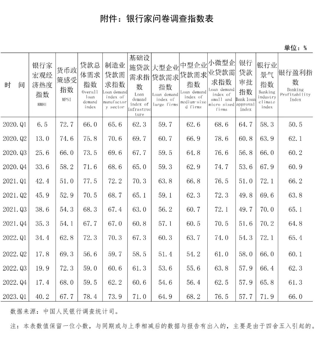 2023年第一季度中国人民银行开展的全国银行家问卷调查结果显示: