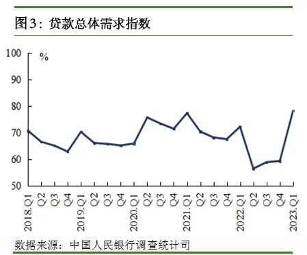 贷款总体需求指数为78.4%,比上季上升19.0个百分点,比上年同期上升6.1个百分点。分行业看,制造业贷款需求指数为73.9%,比上季上升11.6个百分点;基础设施贷款需求指数为71.0%,比上季上升10.4个百分点;批发零售业贷款需求指数为68.0%,比上季上升10.9个百分点;房地产企业贷款需求指数为55.3%,比上季上升11.6个百分点。分企业规模看,大型企业贷款需求指数为64.9%,比上季上升10.3个百分点;中型企业为68.2%,比上季上升11.8个百分点;小微企业为76.5%,比上季上升14.0个百分点。