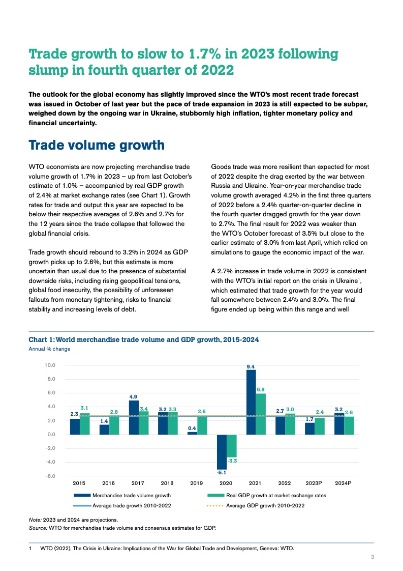 同时,对2023年贸易增长的1.7%的预测,比去年10月1.0%的估计有所提高。