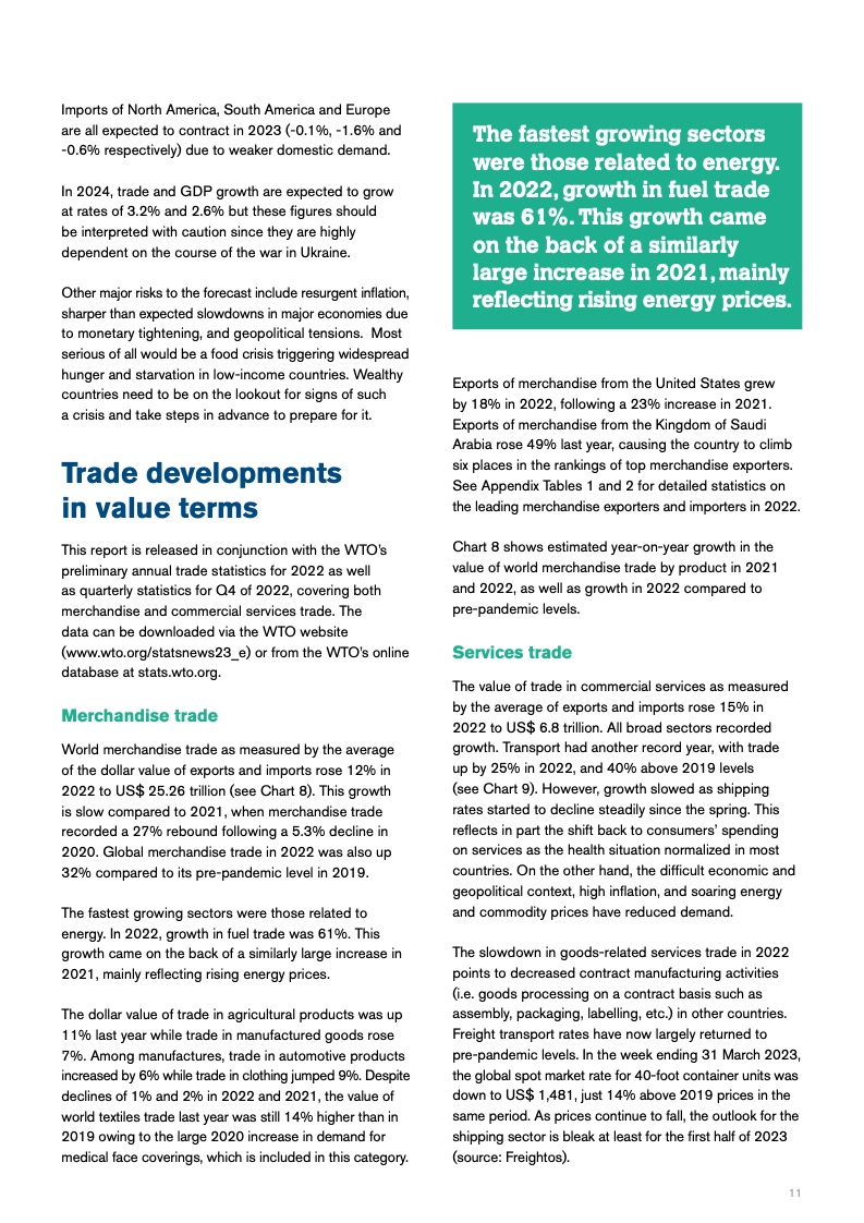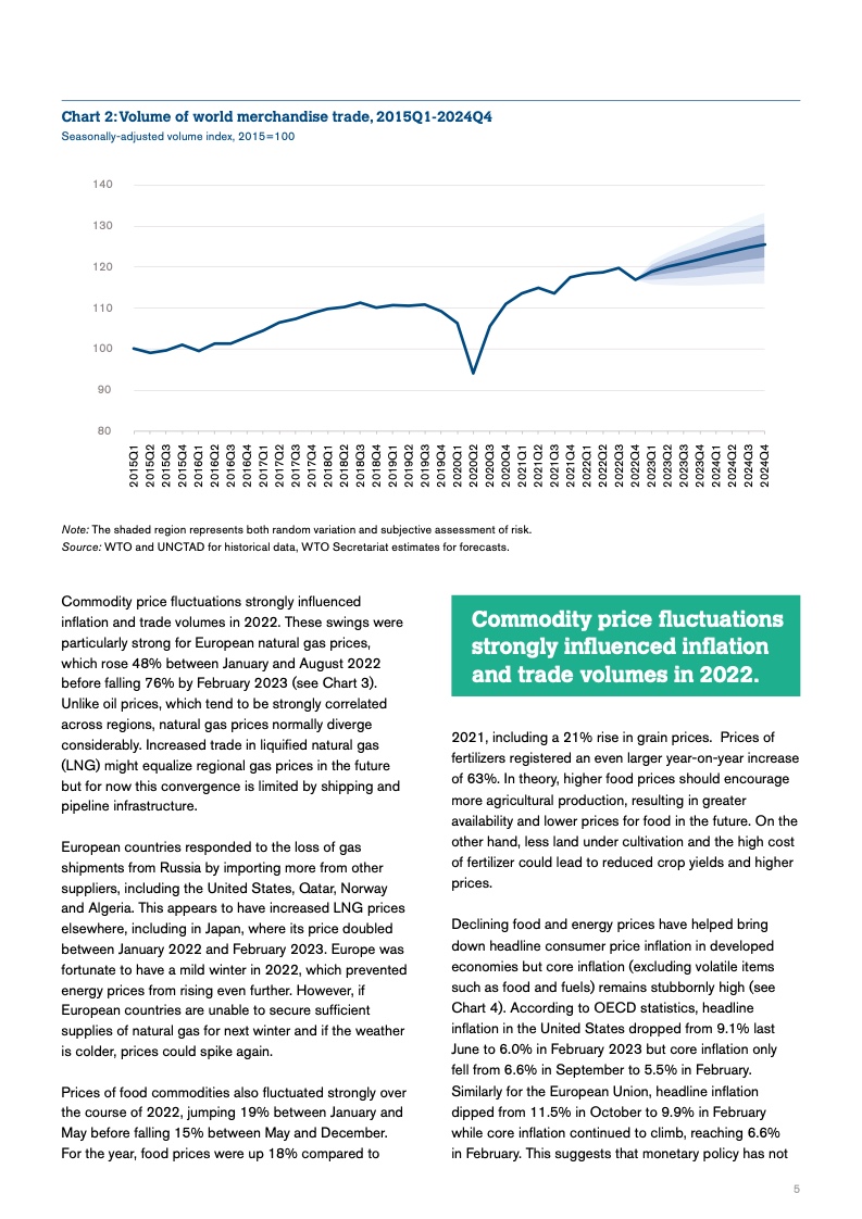 展望2024年,随着国内生产总值回升到2.6%,贸易增长可能将反弹到3.2%,但由于存在大量的下行风险,包括地缘政治紧张局势、粮食供应冲击,以及货币紧缩可能带来的不可预见的后果,这一预测比平时更加不确定。
