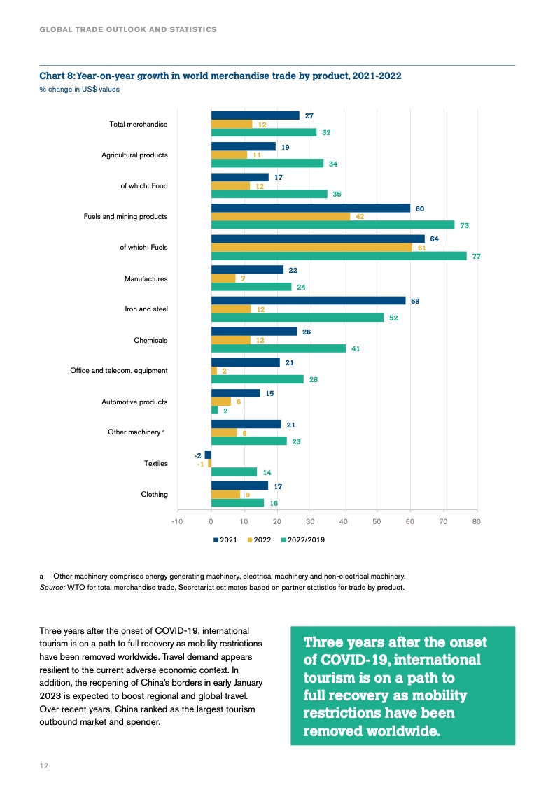 世贸组织总干事恩戈齐–奥孔乔–伊维拉说:“贸易仍然是全球经济中的韧性力量,但在2023年,它仍将受到来自外部因素的压力。这使得各国政府避免贸易分裂和避免引入贸易障碍变得更加重要。正如世贸组织成员在去年6月第十二届部长级会议上所做的那样,投资于贸易方面的多边合作,将长期支持经济增长和人民的生活水平。“
