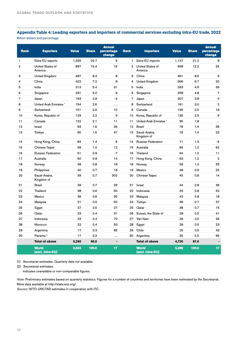 2022年世界贸易额增长2.7%,低于世贸组织10月份预测的3.5%,因为第四季度环比下降幅度大于预期,拉低了该年的增长。有几个因素导致了这一下滑,包括全球商品价格上涨和应对通货膨胀的货币政策收紧等。