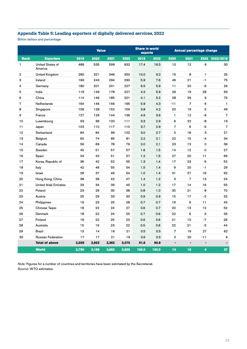 世贸组织在新的《全球贸易展望和统计》报告中提出了贸易预测,估计2023年全球实际GDP增长率为2.4%。对贸易和出口增长的预测都低于过去12年的平均水平,分别为2.6%和2.7%。