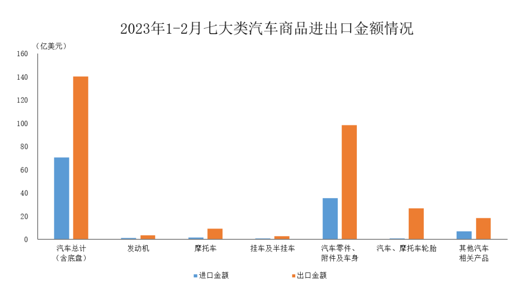 中国汽车工业协会:2023年1-2月海关进出口情况简析 据中国汽车工业协会整理的海关总署数据显示,2023年1-2月,与上年同期相比,汽车商品进口金额呈较快下降,出口金额保持快速增长。 2023年1-2月,全国汽车商品累计进出口总额为414.2亿美元,同比增长20.7%。其中进口金额116.2亿美元,同比下降26.3%;出口金额298亿美元,同比增长60.7% 更多阅读:中国汽车工业协会:2022年9月海关进出口情况简析中国汽车工业协会:2022年3月全国海关汽车商品进出口数据中国汽车工业协会:2022年汽车商品进口金额前十国情况简析中国汽车工业协会:2022年1-9月汽车商品进口金额前十国情况简析中国汽车工业协会:2023年一季度汽车商品进口金额前十国情况简析中国汽车工业协会:2021年1-9月汽车商品进口金额前十国简析中国汽车工业协会:2021年1-7月汽车商品进口金额前十国简析中国汽车工业协会:2023年1-2月汽车商品进口金额前十国情况简析中国汽车工业协会:2022年1-11月汽车商品进口金额前十国情况简析中国汽车工业协会:2022年1-4月汽车商品进口金额前十国情况简析中国汽车工业协会:2021年1-8月汽车商品进口金额前十国家排名中国汽车工业协会:2023年1-2月我国汽车商品出口金额前十国情况简析中国汽车工业协会:2022年3月前十位轿车品牌销量排名中国汽车工业协会:2021年5月汽车工业运行情况简述中国汽车工业协会:2023年3月海关进出口情况简析