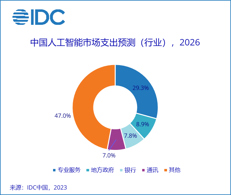 IDC预计,在五年预测期内,AI领域的主要支出仍将来自于专业服务领域的行业用户,紧随其后的是政府和金融行业,三者合计约占市场总量的一半以上。增长最快的行业分别为银行和地方政府,五年CAGR均超23%。具体来看,AI在专业服务领域,可以广泛应用于搜索和推荐、广告营销等,目前ChatGPT已经嵌入必应搜索,带来了更多的智能化和人性化的特性,提升用户的搜索体验和搜索效率,为国内市场提供了新思路。在政府行业,主要应用在公共安全、城市管理和社会服务方面,通过人脸识别和大数据相关技术,识别出潜在的安全风险,此外还可以在办理业务时进行人员核对,提高办事效率。在金融行业主要的应用包括风险管理、欺诈检测、投资分析等,随着数字人的不断进步,金融行业的服务模式也将重塑。