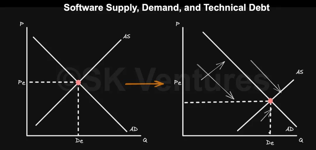 2. 随着软件生产的成本与复杂性坍塌,从而释放出一波创新浪潮,这笔技术债务将会戏剧性地、遍及整个经济地偿还回去。