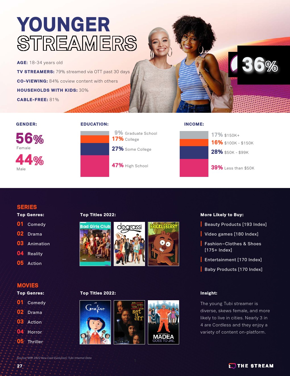 Tubi和FOX联合发布了“2023年受众洞察”报告。广告支持的视频点播(AVOD) 成为电视行业的一部分,而 2022 年向我们表明,随着消费者对观看方式和观看内容的改变,电视的未来正在迅速变化。每年,越来越多的观众发现传统付费电视之外的选择并采用广告支持的流媒体。