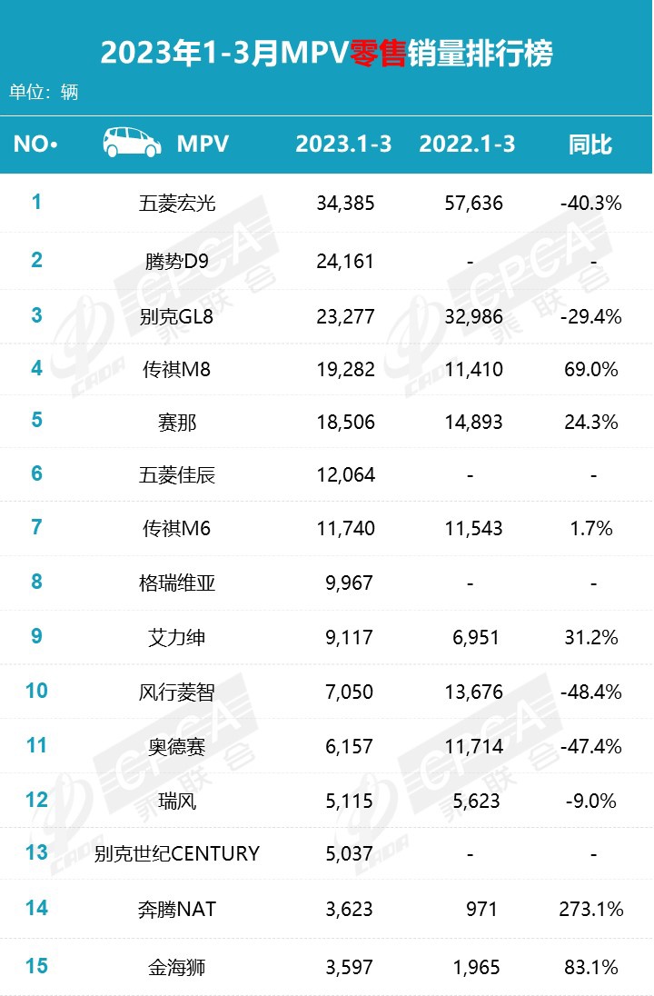 3 月份 MPV 销量 10.0 万辆,同比增长 39.0%,环比增长 21.2%;累计销量 24.3 万辆,同比增长 1.3%。