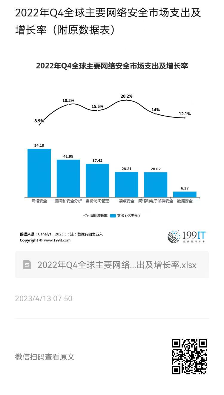 - 2022年Q4全球网络安全市场支出及增长率(附原数据表)