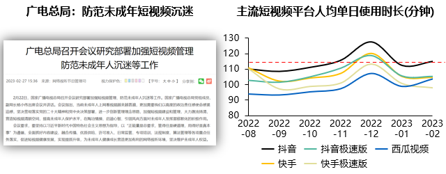 同时,2023年2月,广电总局召开会议,研究部署“加强短视频管理,防范未成年人沉迷等工作”,旨在加强短视频管理,防范未成年人沉迷等问题。针对短视频平台的内容建设、许可准入、日常监管、法规制度、算法管理等各项重点任务也将逐步落实。