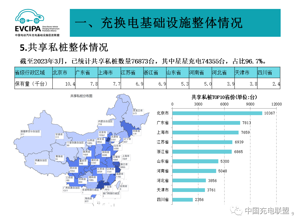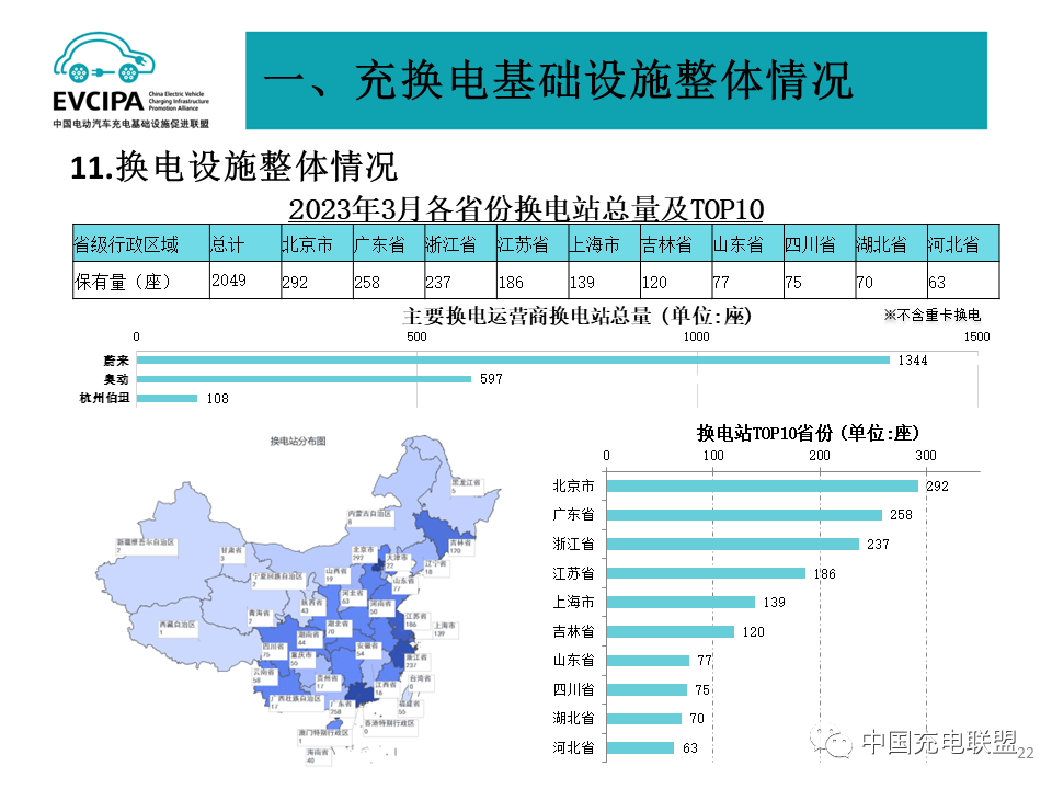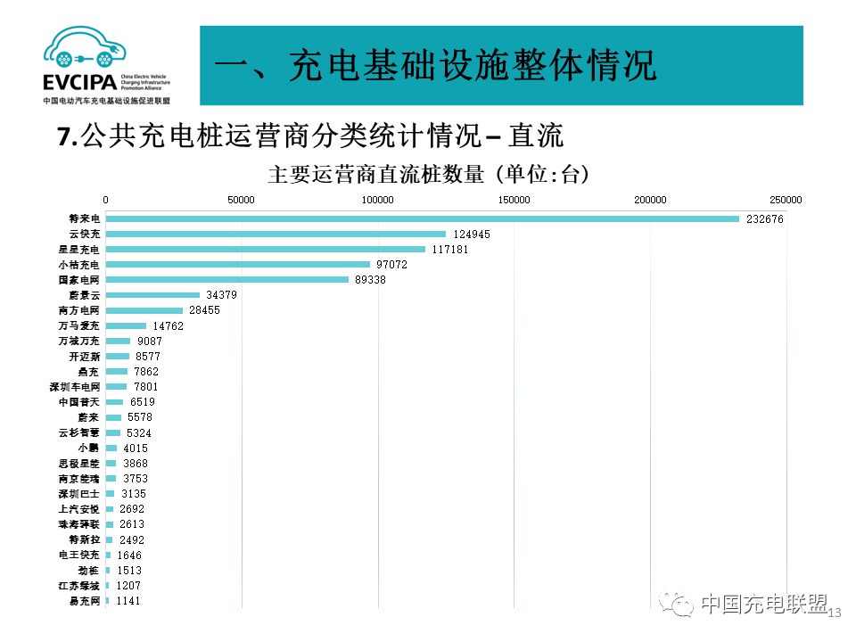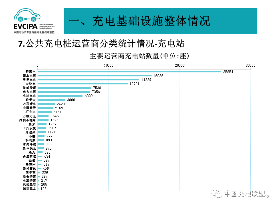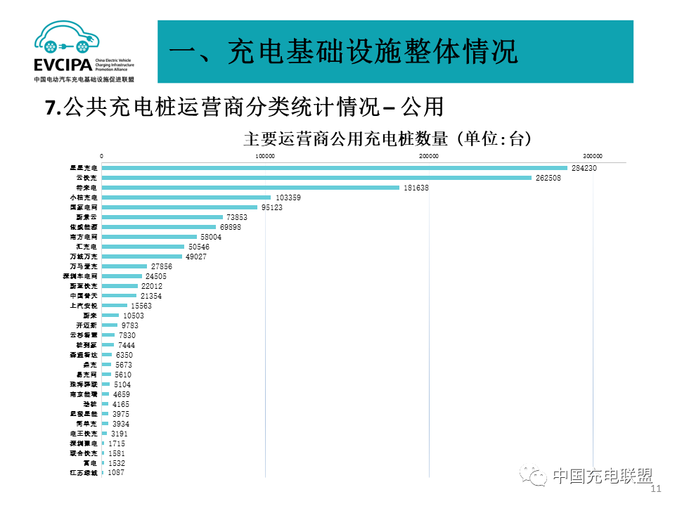 3、公共充电基础设施运营商运行情况,截止到2023年3月,全国充电运营企业所运营充电桩数量TOP15,分别为:特来电运营38.8万台、星星充电运营36.9万台、云快充运营29.1万台、国家电网运营19.6万台、小桔充电运营10.3万台、蔚景云运营8.3万台、深圳车电网运营7.3万台、南方电网运营7.3万台、依威能源运营7.1万台、汇充电运营5.1万台、万城万充运营4.9万台、万马爱充运营2.8万台、上汽安悦运营2.4万台、中国普天运营2.3万台、蔚蓝快充运营2.2万台。这15家运营商占总量的94.2%,其余的运营商占总量的5.8%。