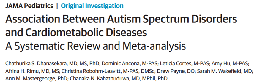 [3] Dhanasekara CS, Ancona D, Cortes L, et al. Association Between Autism Spectrum Disorders and Cardiometabolic Diseases: A Systematic Review and Meta-analysis. JAMA Pediatr. 2023;177(3):248-257. doi:10.1001/jamapediatrics.2022.5629