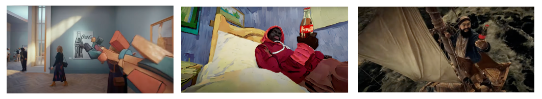 可口可乐最新的创意广告短片,采用了AI+3D+实拍的形式,展现主人公身处博物馆的场景。通过一瓶可口可乐作为媒介的形式,让名画之间有了互动。结合实拍,3D效果和AI处理,使得名画里的人物生动了起来。