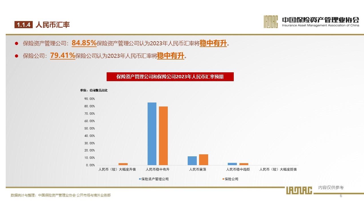 汇率方面,80%左右的调查对象认为2023年人民币汇率将稳中有升,没有机构认为今年“人民币将(较)大幅度贬值”。