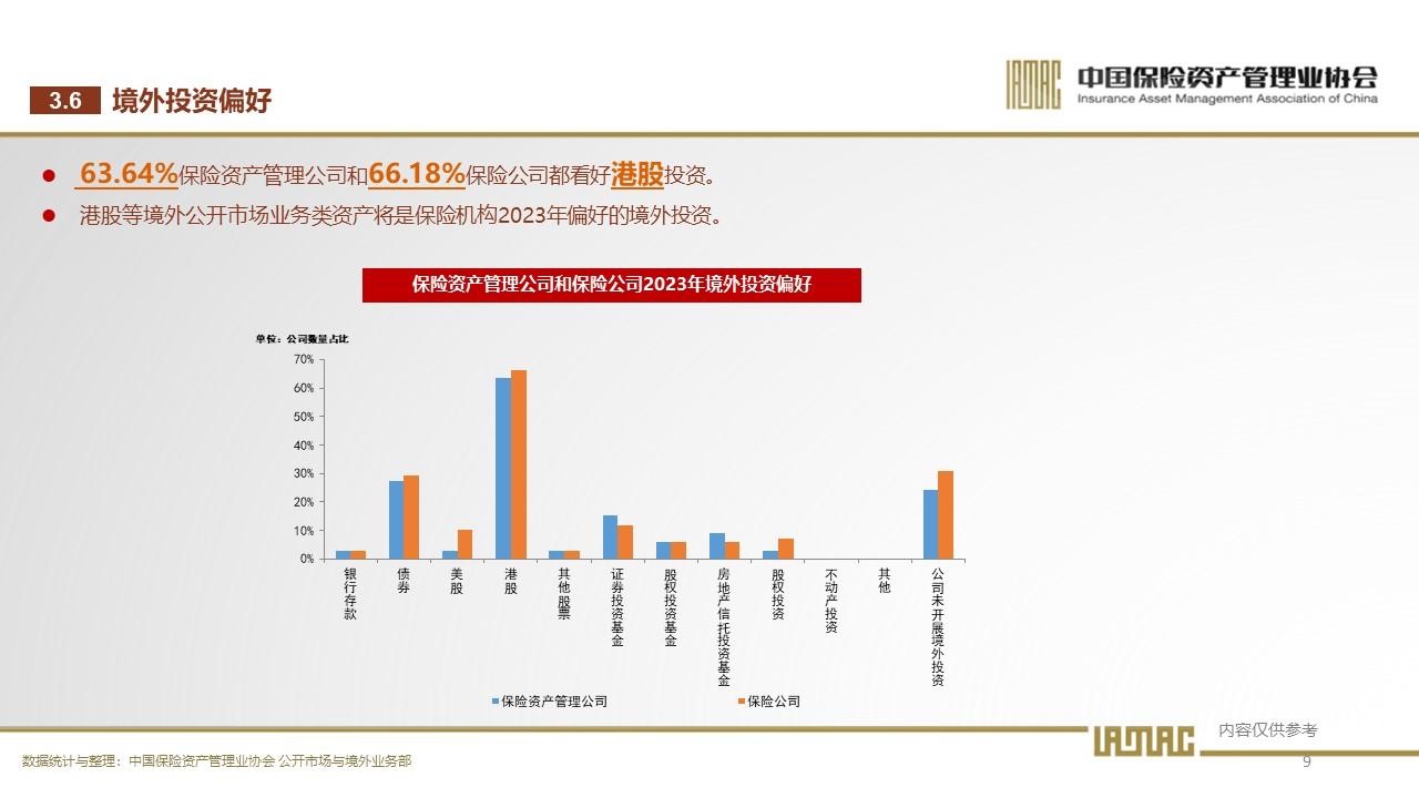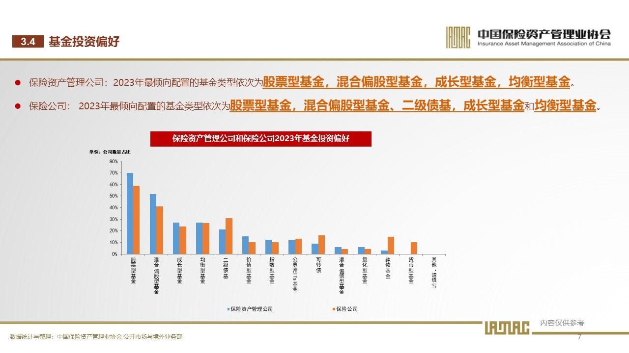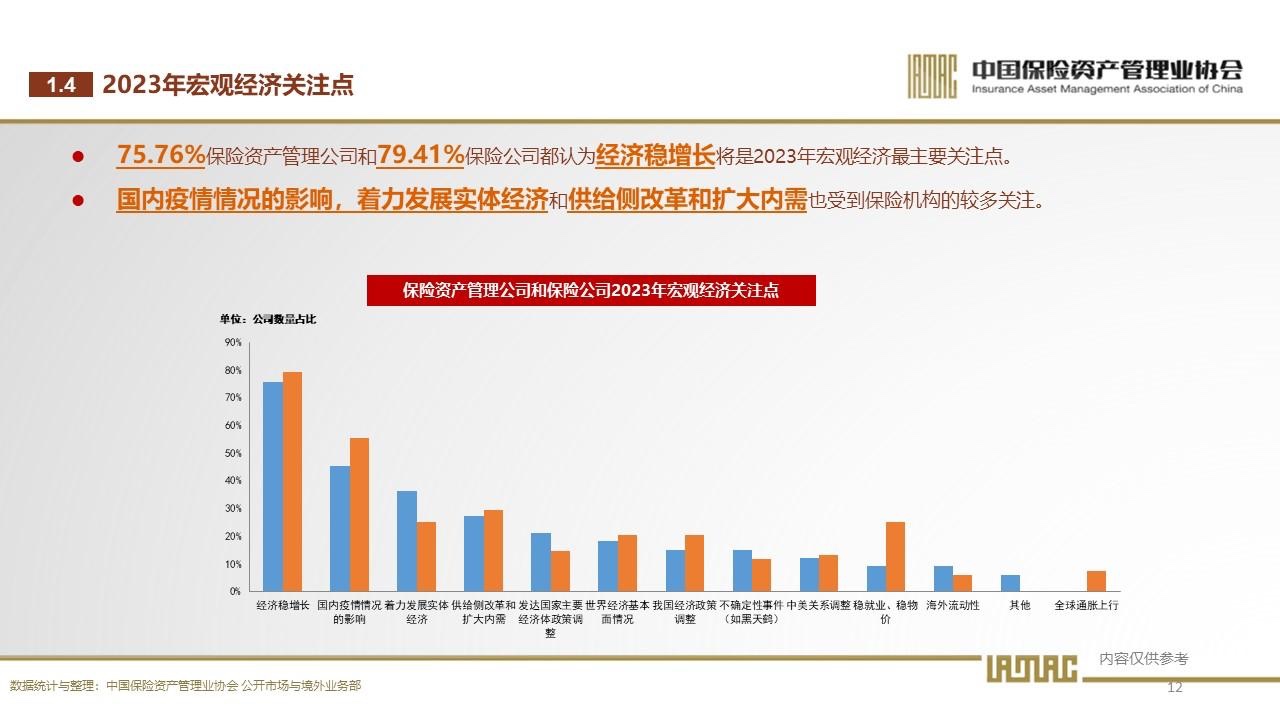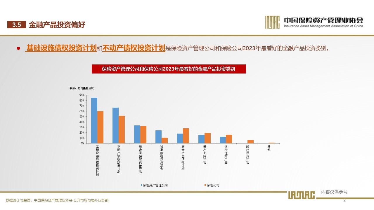 根据受访机构对资本市场的预期,今年保险机构将对资产配置进行调整。其中,股票和证券投资基金是2023年保险资管公司和保险公司最为偏好的资产配置,对债券的配置偏好有所下降,但公募REITs和组合类保险资产管理产品受到了保险机构的更多关注。