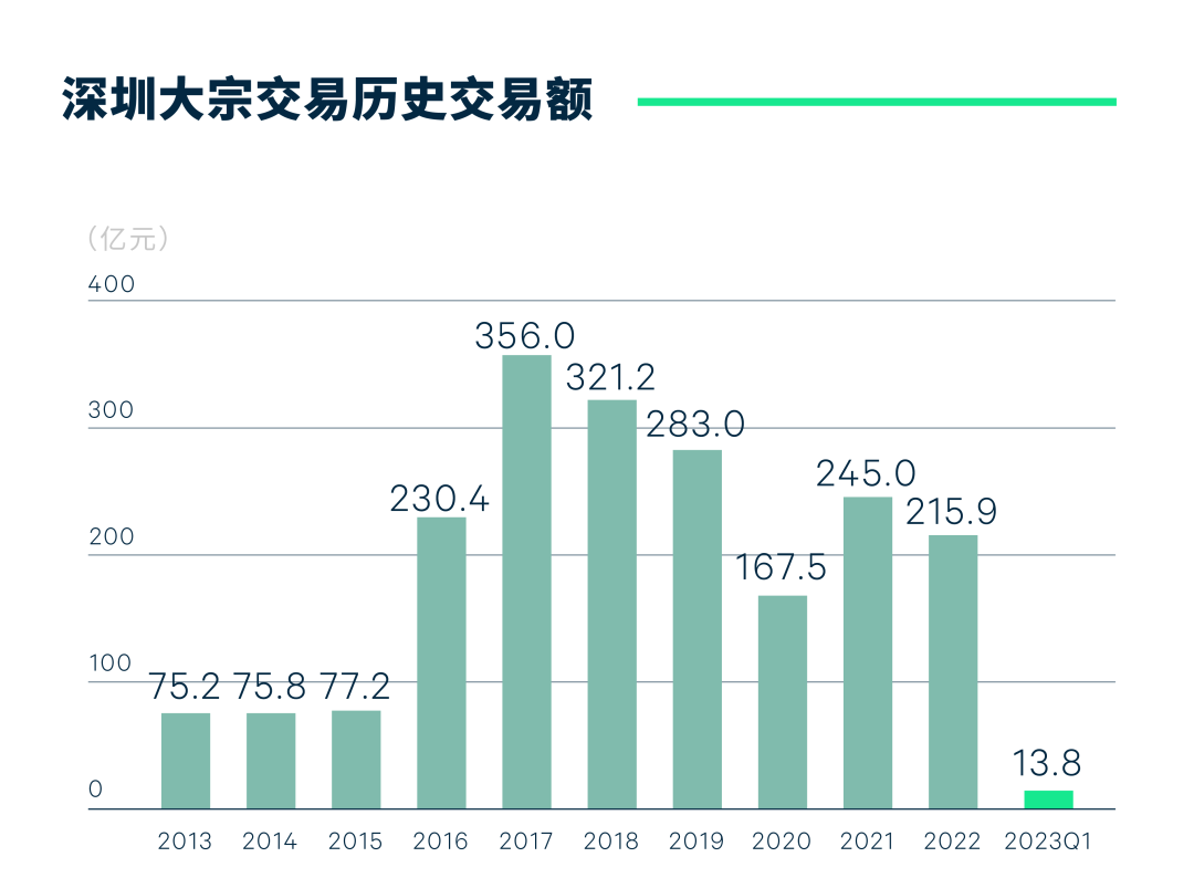 深圳大宗交易市场在一季度依然保持了一定的活跃度,共录得10宗交易,交易总额共计人民币13.8亿元,成交物业类型多样化,涵盖工业、写字楼和商业。虽然成交宗数较多,但成交总额环比及同比下降较为明显,整体市场情绪仍在逐步修复中。