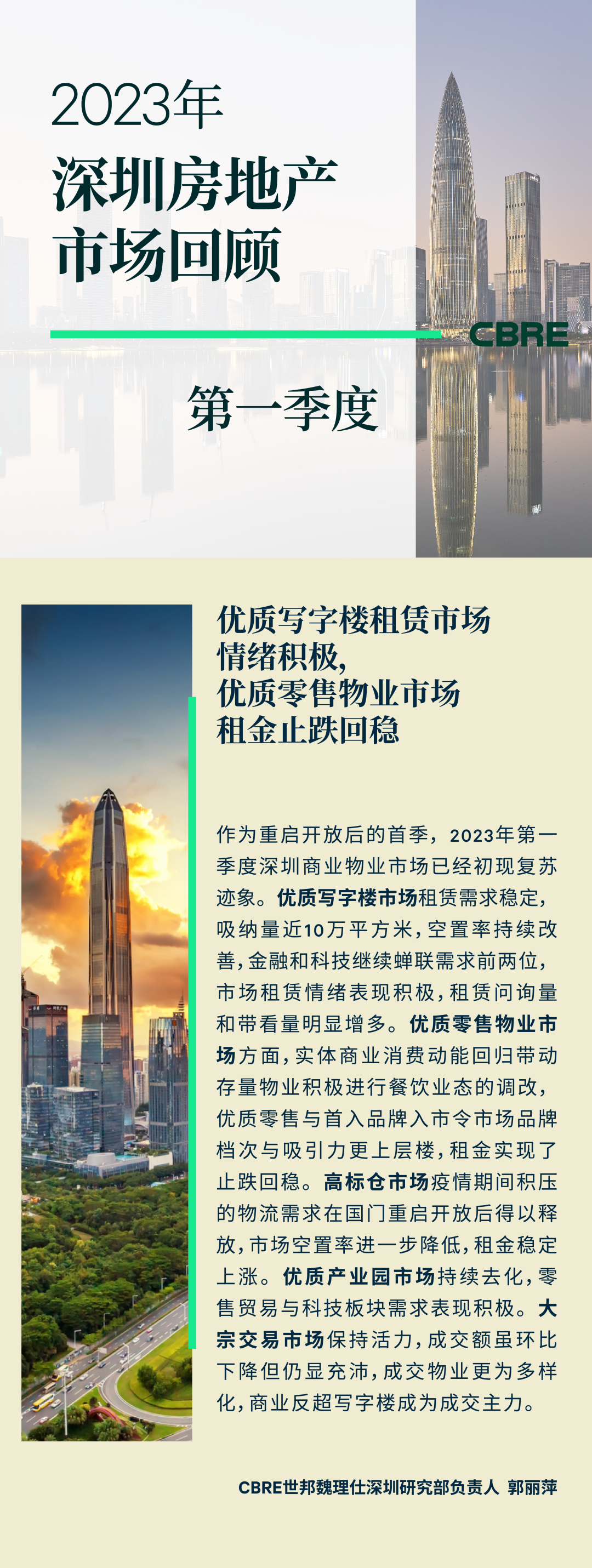 深圳第一季度录得一个新项目入市,为位于罗湖4.3万平方米的万象城三期,该项目由底商改造而成,高零售占比且定位小众潮流,为市场引入了众多优质及首入品牌,入驻率表现良好。
