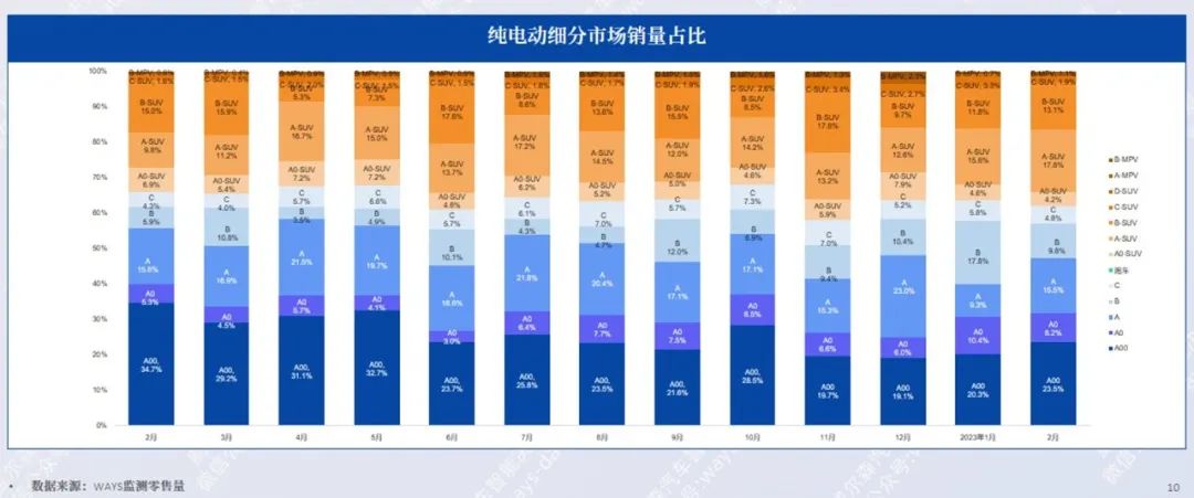 相比去年同期,A-SUV市场份额从9.8%增至17.6%;而A00市场份额从34.7%萎缩至23.5%。