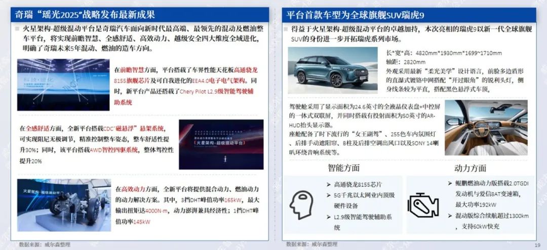 2月27日,奇瑞发布火星架构-超级混动平台,该平台为火星架构下基于混合动力开发,旗下首款车型瑞虎9同步亮相,将于2023年二季度上市。