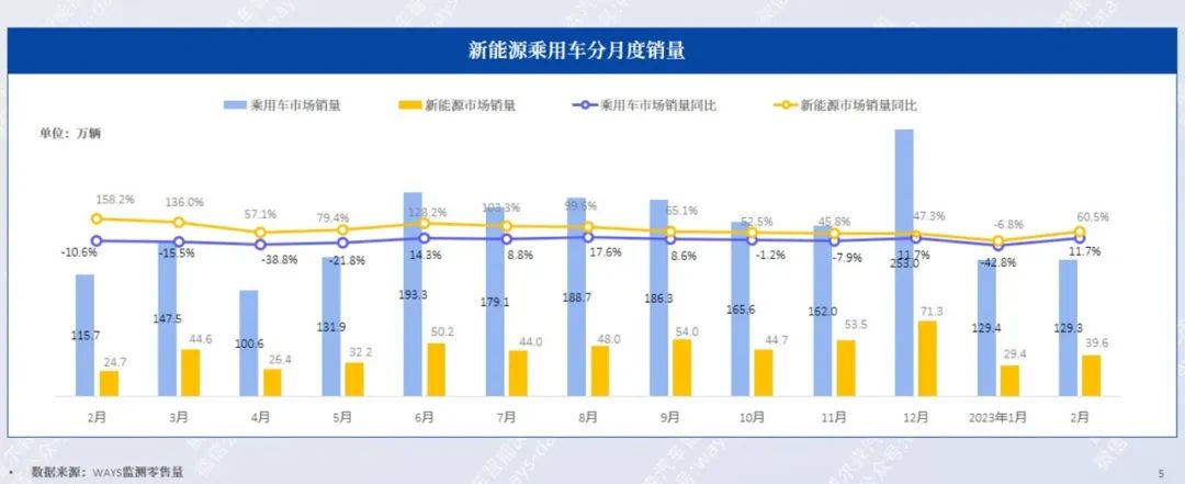2月,乘用车市场销量为129.3万辆,同比上涨11.7%。新能源市场销量约为39.6万辆,同比上涨60.5%,增幅明显高于乘用车市场。