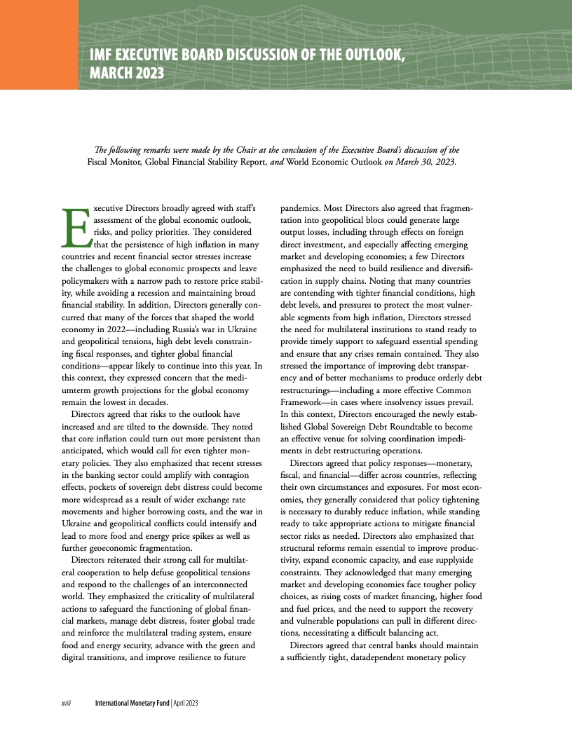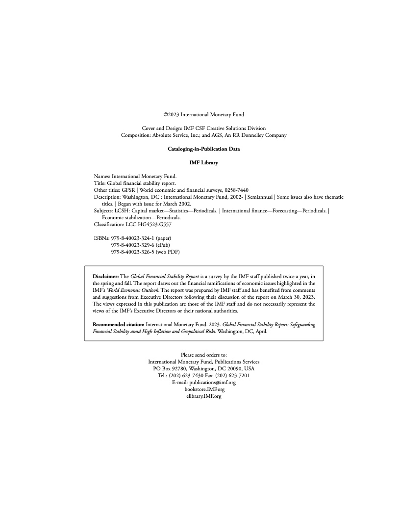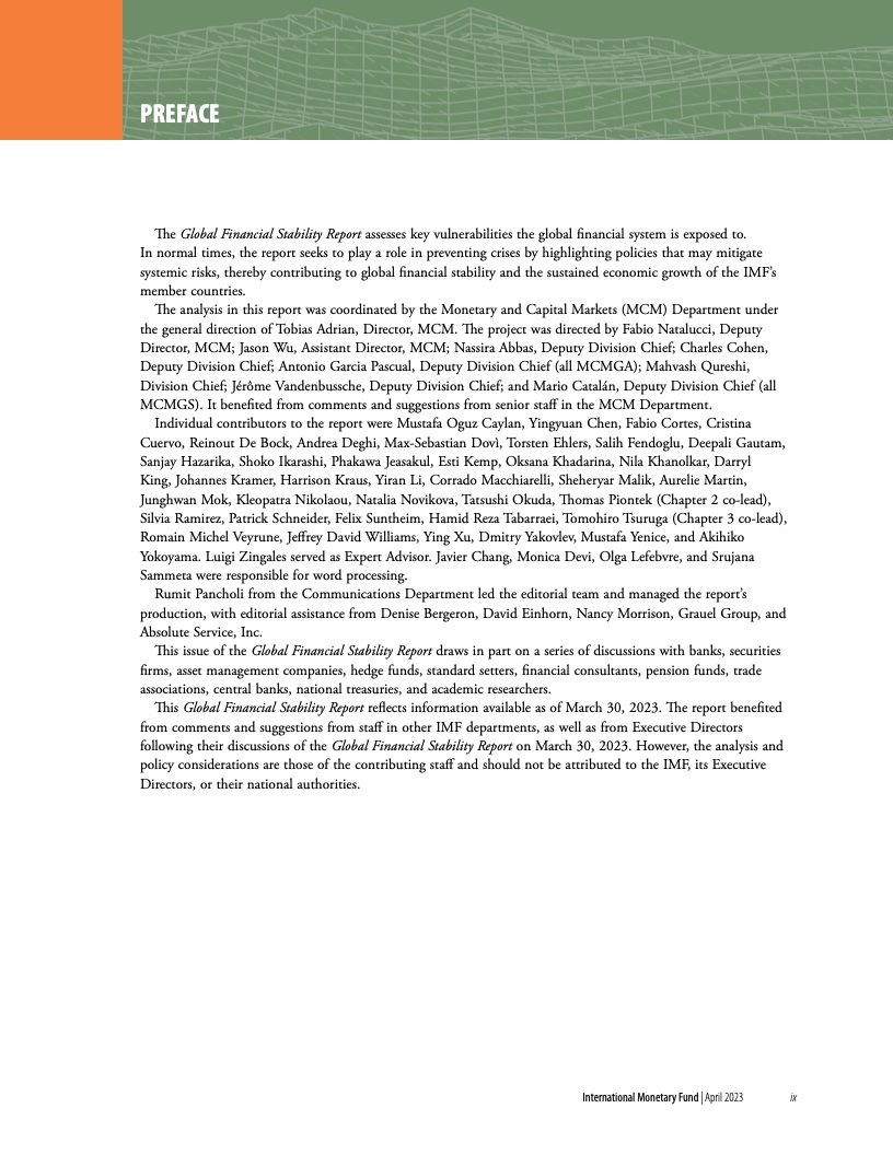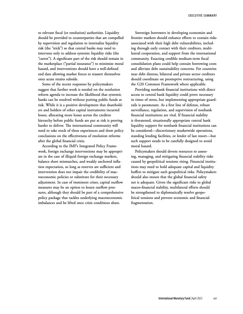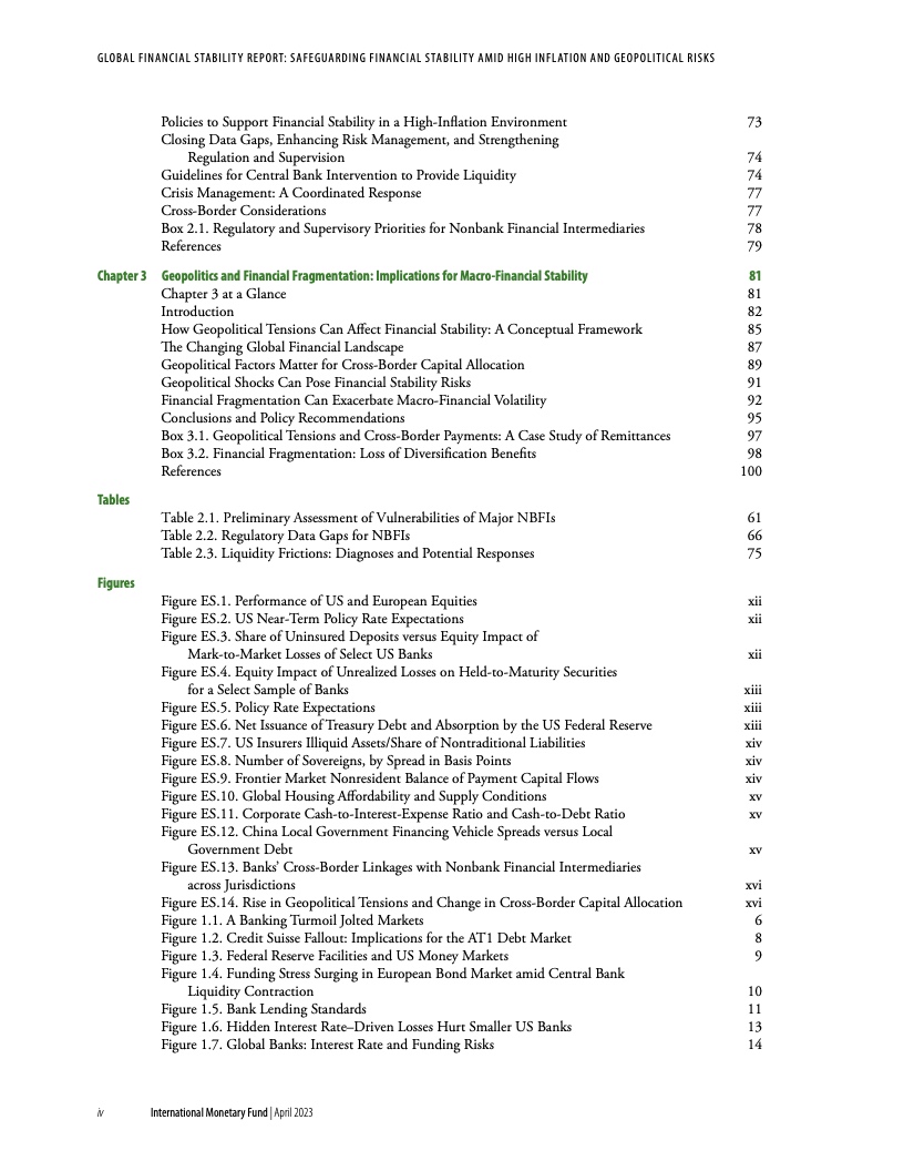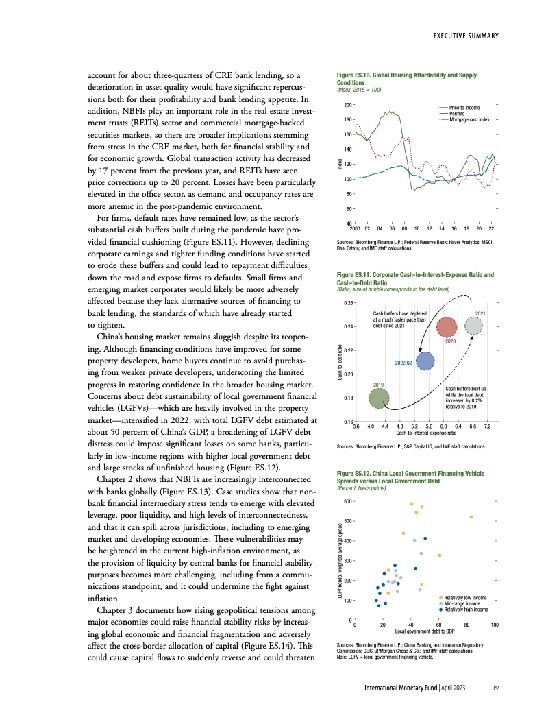 IMF拥有评估全球金融稳定的职能。其指出,金融机构的监管和处置都存在着不足。此前的《全球金融稳定报告》曾警告称,当利率上升时,银行和非银行金融中介机构将面临压力。
