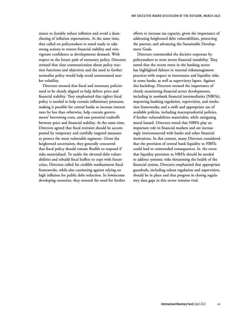 如果金融部门困境会对更广泛的经济产生严重影响,政策制定者可能需要调整货币政策立场以支持金融稳定。如果上述情况发生,他们应该清楚地传达其将在金融压力减轻后尽快将通胀拉回目标水平的坚定决心。