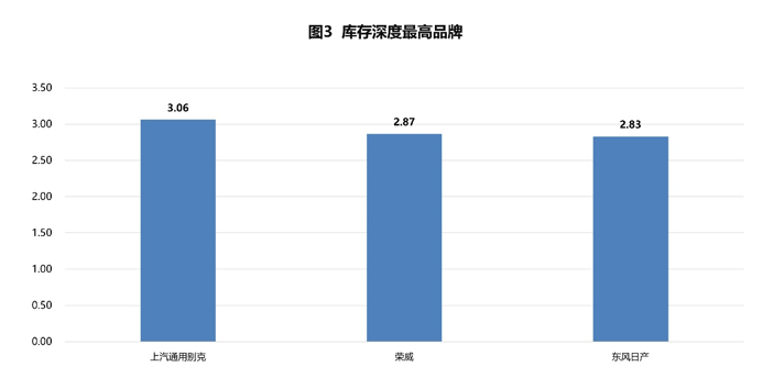 3月份库存深度超过2个月的品牌有9个,其中库存深度最高的品牌为上汽通用别克、荣威、东风日产。