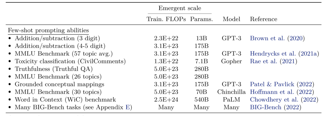 一些能力涌现举例。图片来源:Google、Stanford、DeepMind:Emergent Abilities of Large Language Models