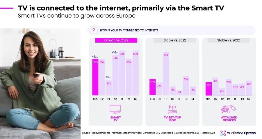 在第三次“流媒体视频:揭露CTV 2023”消费者调查中,深入探讨了联网电视(CTV)用户的观看偏好和意见:FreeWheel在2023年1月31日至2月6日期间对欧洲(特别是英国、法国、德国、西班牙、荷兰和意大利)超过7380名联网消费者进行了消费者研究。