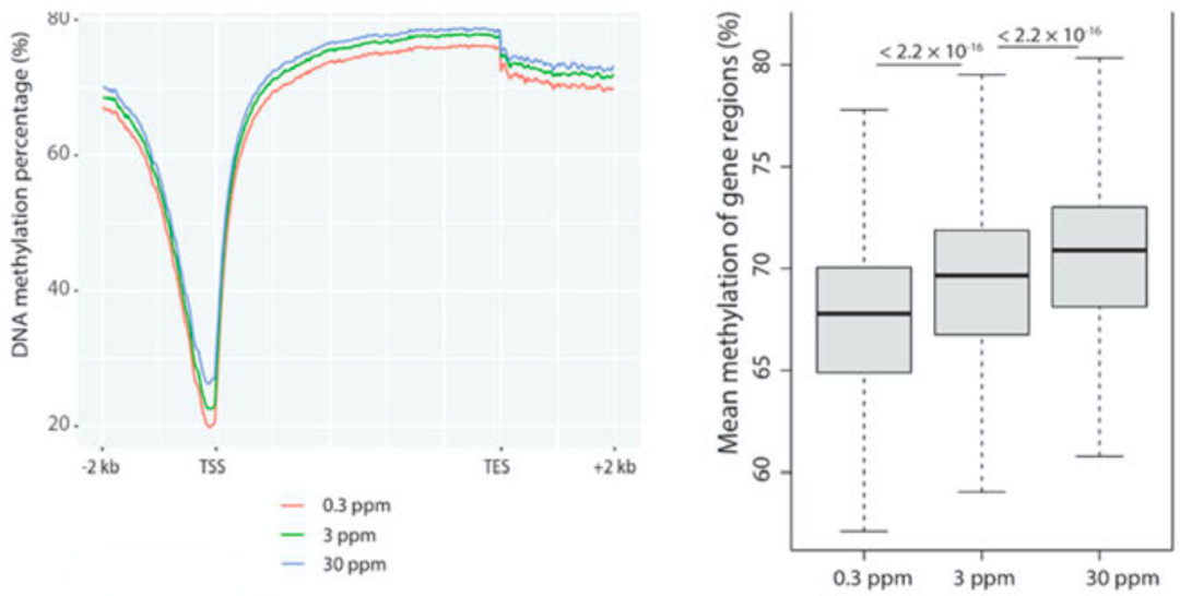 正如我在前面介绍的,叶酸作为甲基供体会影响到DNA的甲基化,而DNA的甲基化与DNA突变也存在一定的关联。因此,研究人员想知道父系摄入不同水平叶酸对后代的DNA甲基化有何影响。