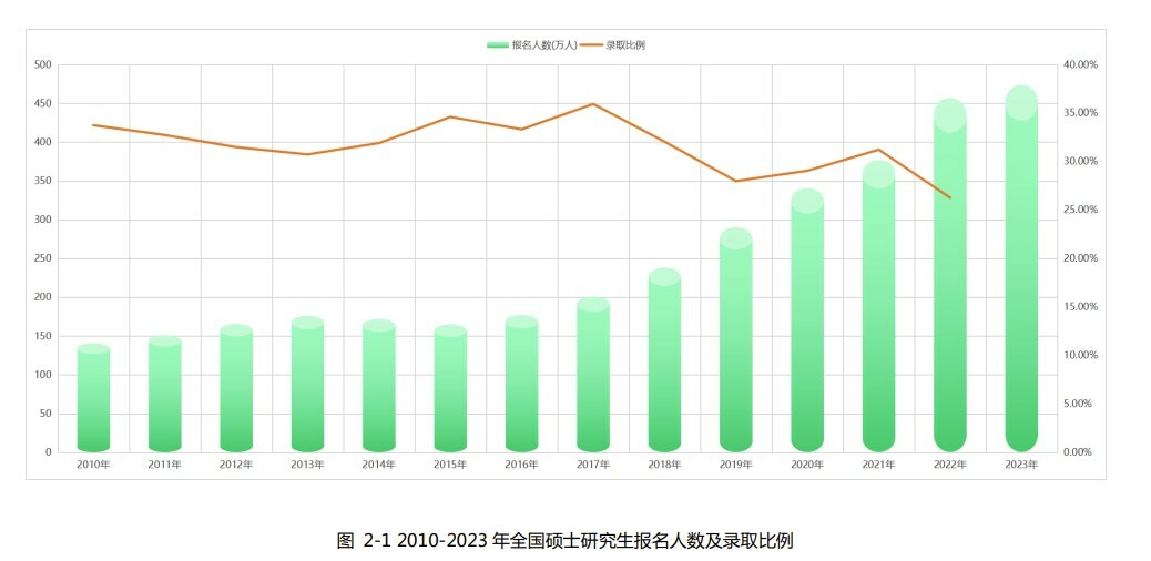 报告称,2023年研究生考录比约为4:1。(用2023年考研474万报名总人数减去网传弃考165万人的差值,比上研招网官方招生总名额 761763人。)