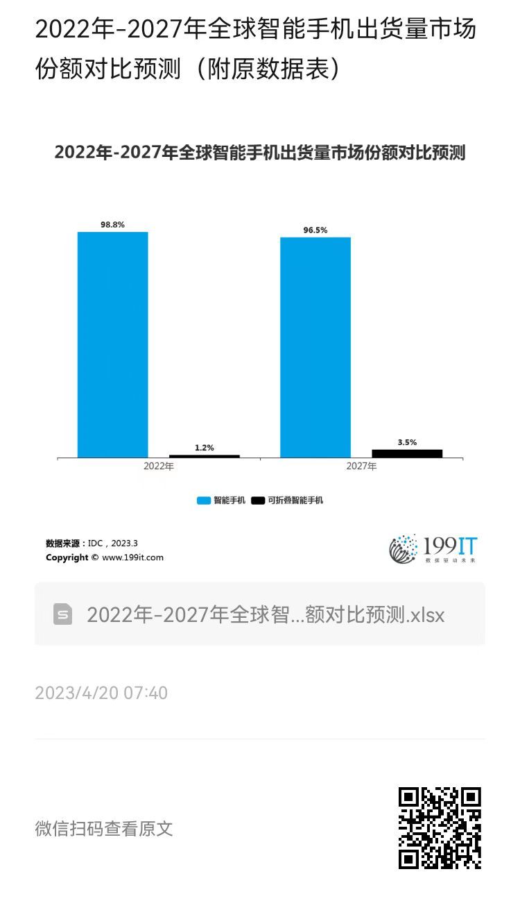 - 2019年-2023年全球智能手机出货量预测(附原数据表)