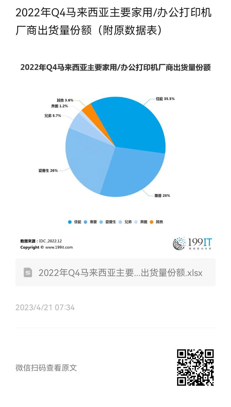 - 2022年Q1菲律宾主要家用/办公打印机厂商出货量市场份额(附原数据表)