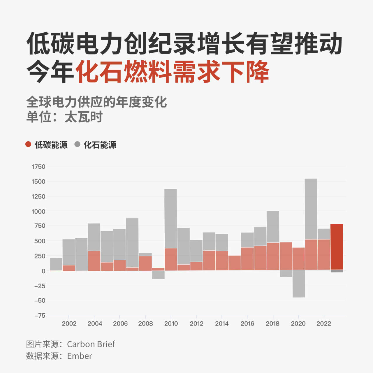 Ember预测,到2023年底,低碳能源将覆盖超过100%的电力增长需求;