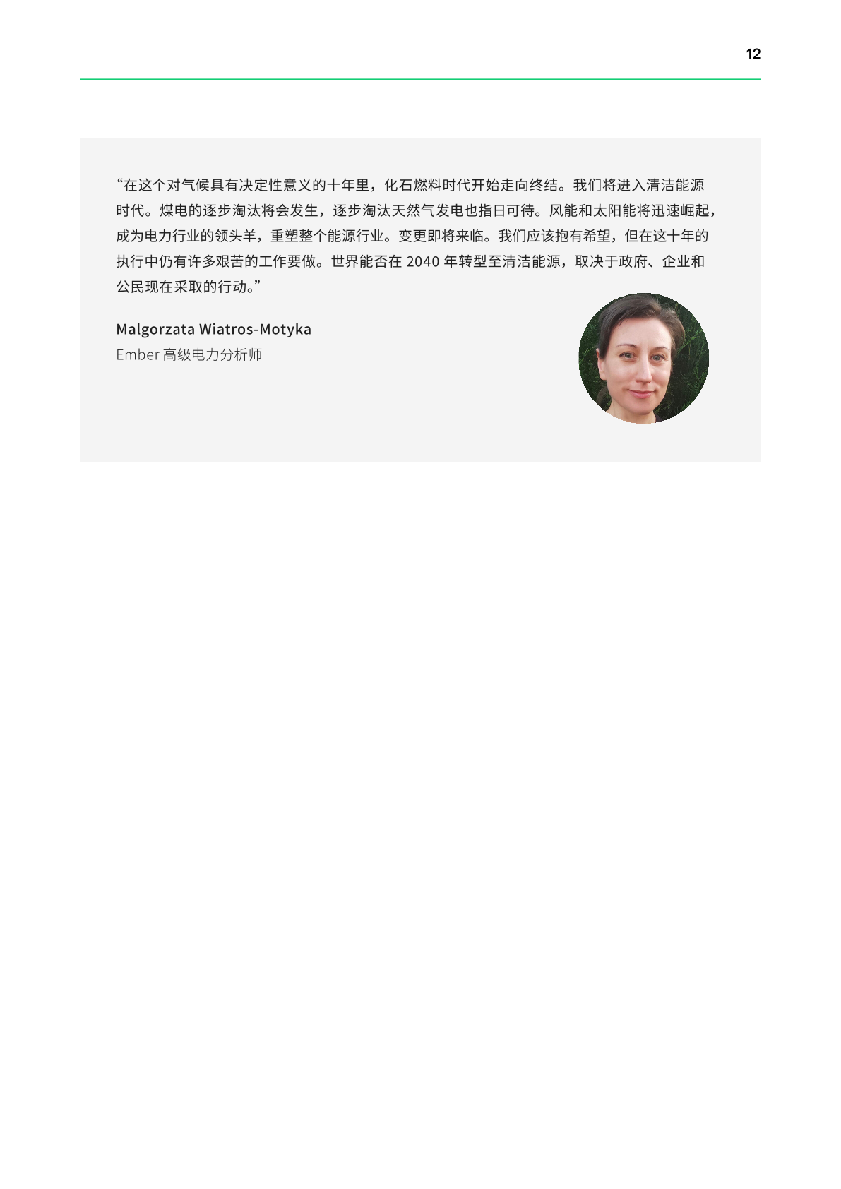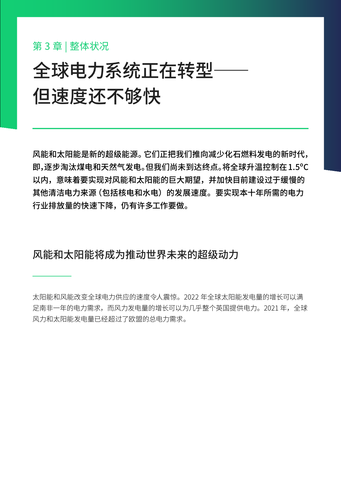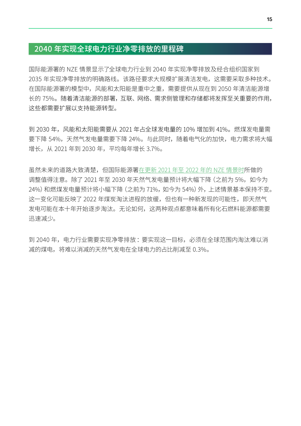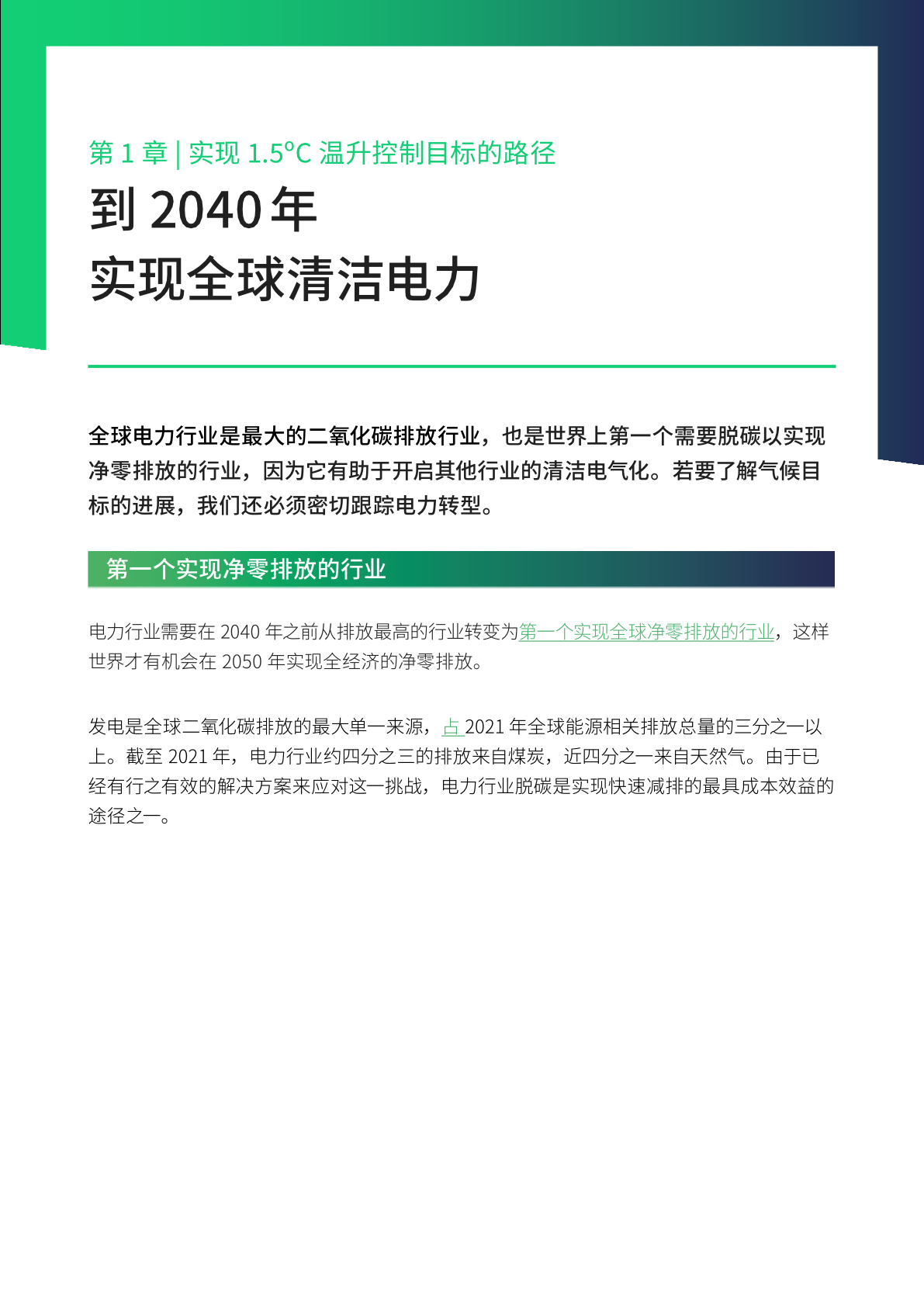 全球电力行业是第一个需要脱碳的行业,与此同时,电力需求也在不断上升,因为电气化推动了整个经济的减排。国际能源署的《净零排放方案》指出,电力行业须在2040年实现净零排放;比2050年实现净零经济的目标提前10年。因此,跟踪电力转型对评估我们的气候进展至关重要。