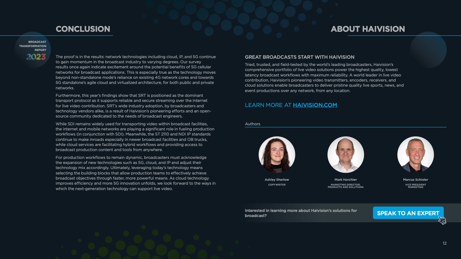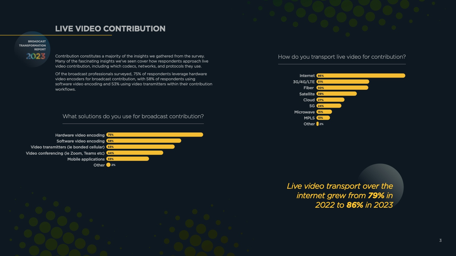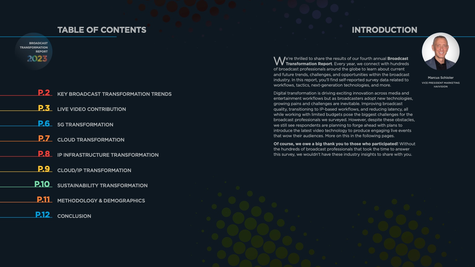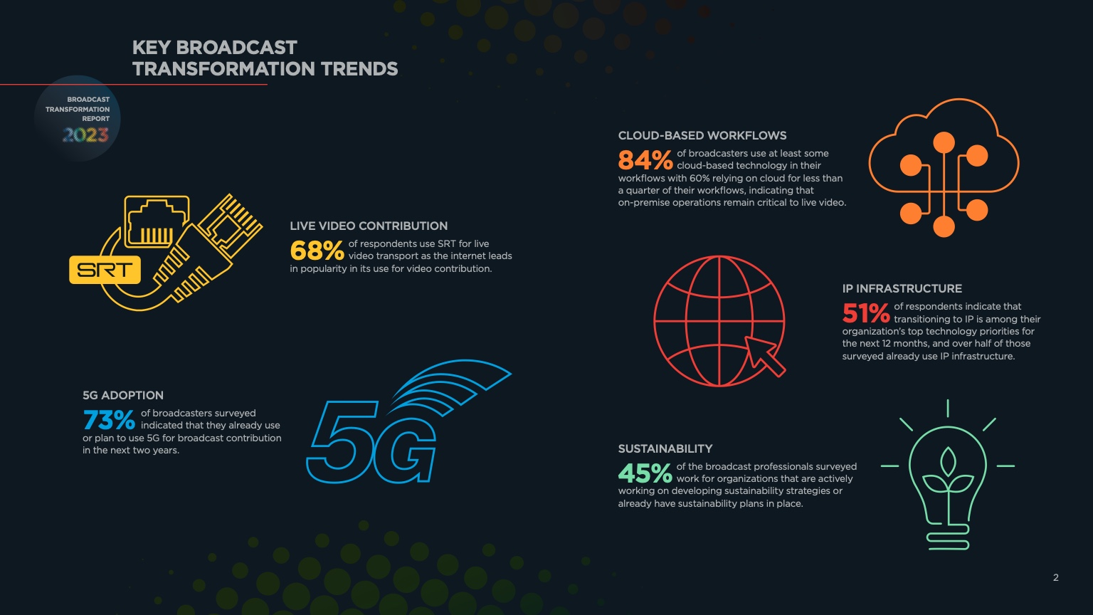该报告通过对Haivision的客户和潜在客户进行调查,收集了来自世界各地700多名广播和媒体专业人士的答复。《广播转型报告》揭示了直播视频贡献、5G、云、IP和可持续性方面的技术趋势。
