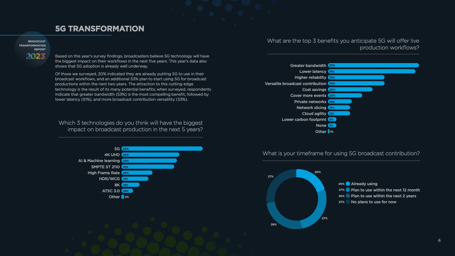 73%的受访广播公司表示,他们已经使用或计划在未来两年内使用5G用于广播贡献。