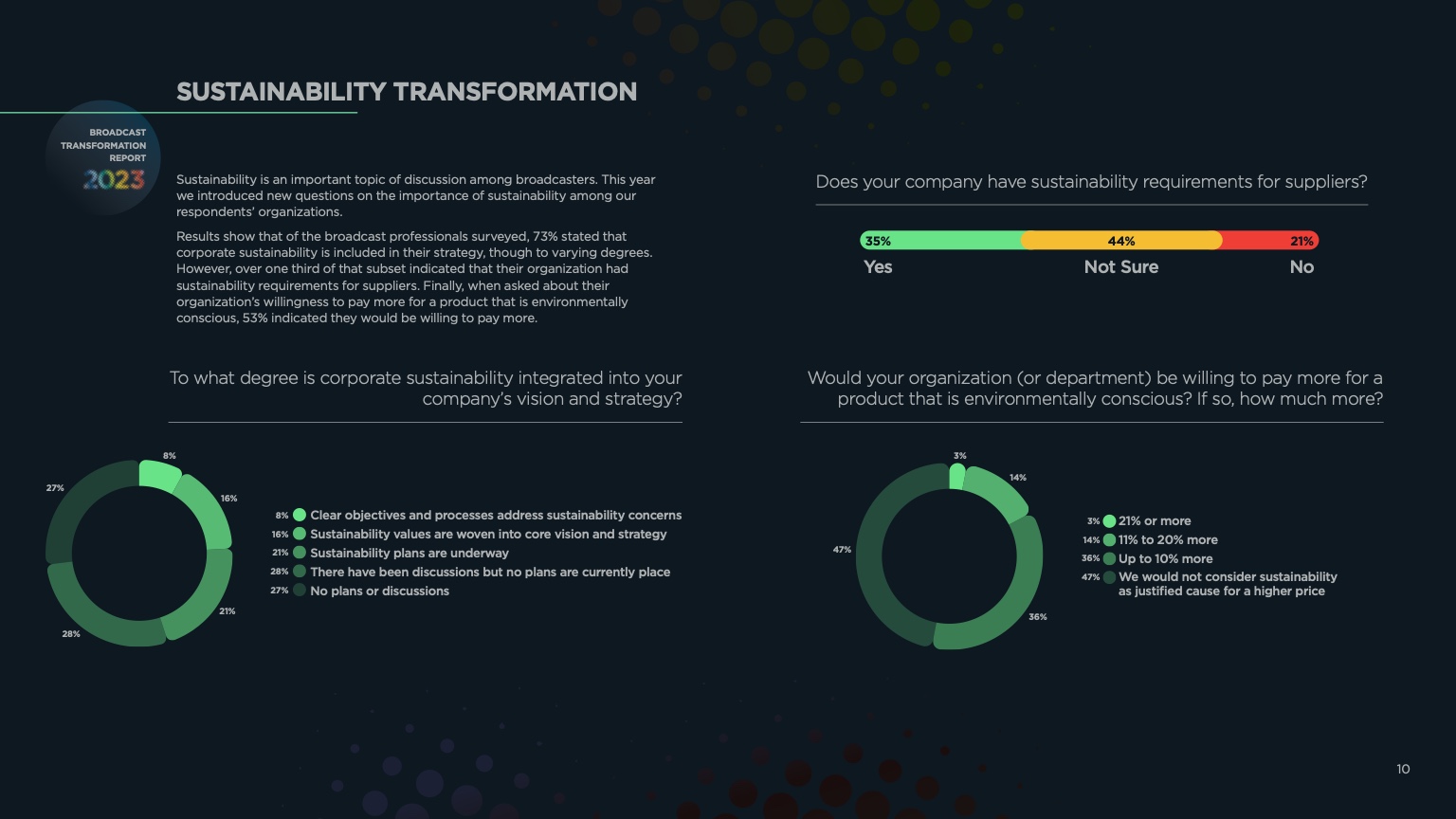 接受调查的广播专业人员中,有45%的人所在机构正在积极制定可持续发展战略或已经制定了可持续发展计划。