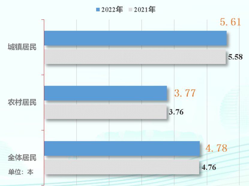 通过对我国城乡成年居民图书阅读量的考察发现,2022 年,我国城镇居民的纸质图书阅读量为 5.61 本,较 2021 年的 5.58 本多 0.03 本;农村居民的纸质图书阅读量为 3.77 本,高于 2021 年的 3.76 本。