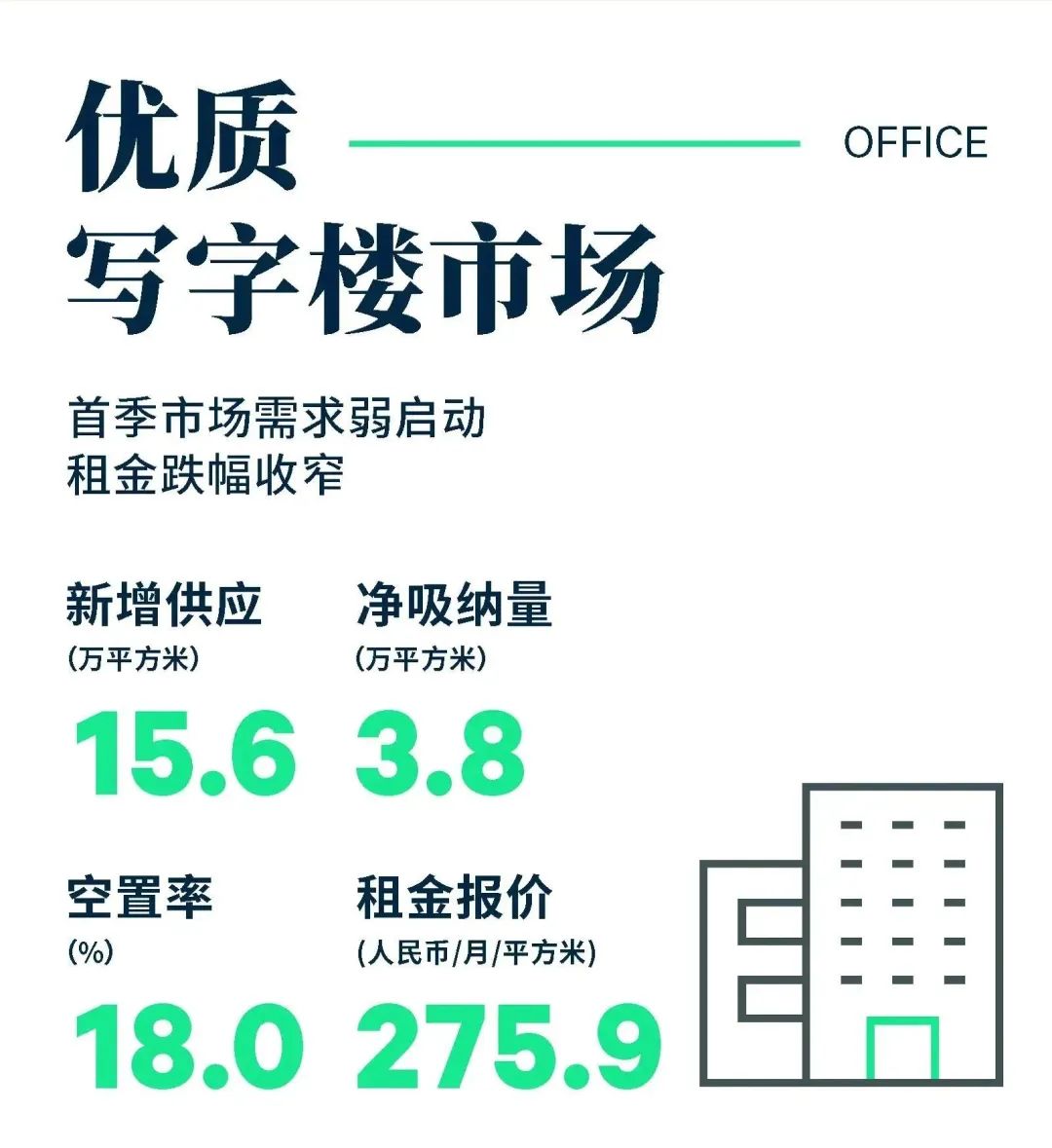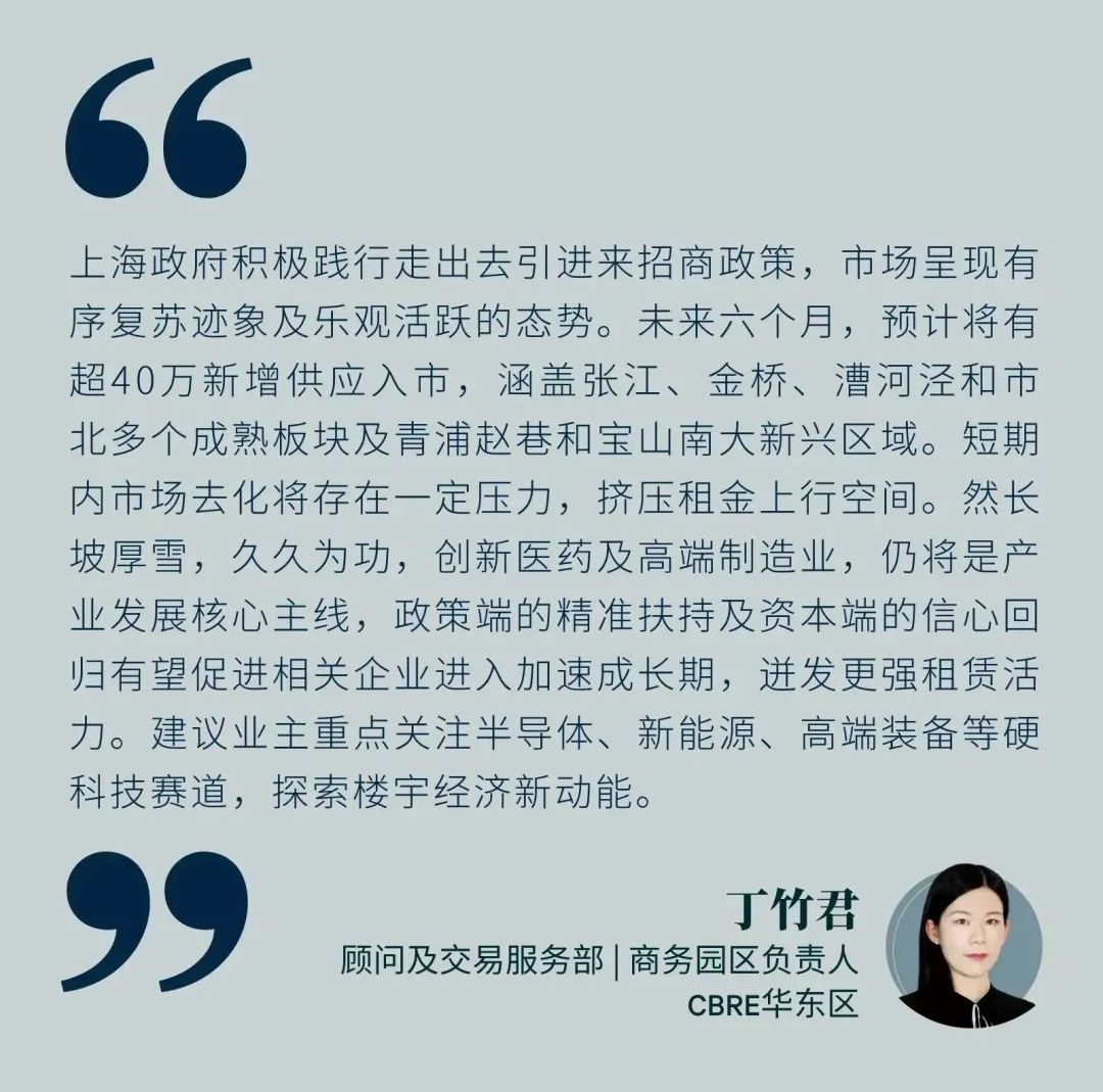 从需求来看,专业服务业(律师事务所、企业咨询和数据服务)、金融业(其他金融服务、证券、基金)与消费品制造业是主要的需求驱动力。从区域来看,前滩和徐汇滨江等滨江商务区净吸纳量居前。至此,全市空置率环比微升0.5百分点至18.0%。