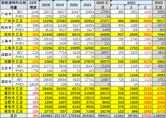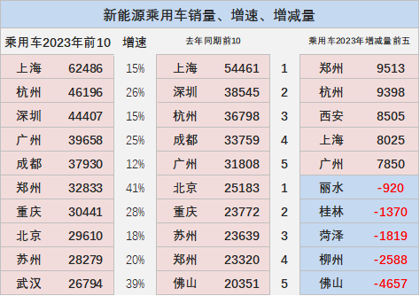 2023 年新能源车相对于 2022 年同期仍是大幅增长,郑州、杭州、西安、上海、广州等增长都相对较为迅猛,形成增量的核心推动力量。