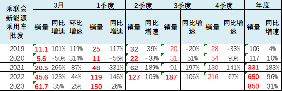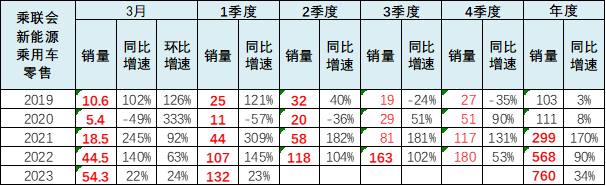 1-3 月的 150 万台的销量较强,同比增量 31 万台,体现新能源需求较好,未来仍有上升潜力。