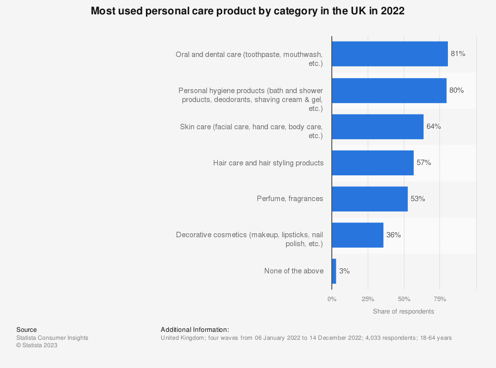 尽管追求美越来越不分性别,但与男性相比,女性在网上购买的美容产品仍然更多。然而,有趣的是,男性通过手机购买的美容产品比女性多。2022年,口腔和个人护理产品是最常用的健康产品。对于这两种产品,超过80%的英国消费者表示经常使用。这一年,在线消费者在个人护理上的平均花费为453美元,在美容上的平均花费为57美元。