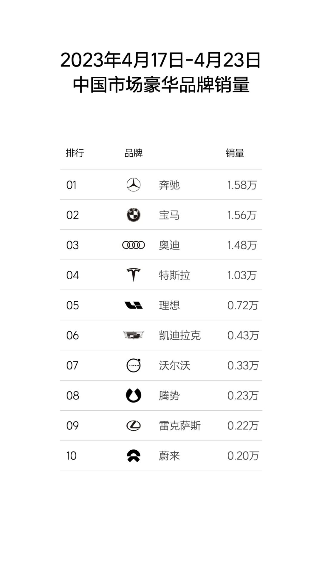 此外,理想汽车也继续保持中国市场豪华品牌销量前五,是榜单中排名最高的中国品牌,仅次于特斯拉,也超越了BBA以外的其他传统豪华品牌。