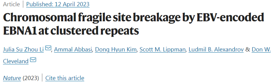 Julia Su Zhou Li et al. Chromosomal fragile site breakage by EBV-encoded EBNA1 at clustered repeats. Nature, 2023, doi:10.1038/s41586-023-05923-x.